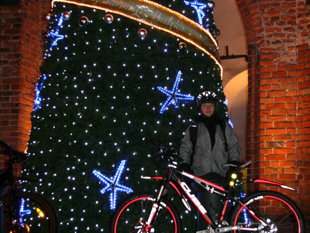 Do Pasłęka ruszylismy górą przez Wysoczyznę. Z Zastawna do Sąp zaliczylismy odcinek terenowy. Dalej w Pasłęku na zamku podziwialismy choinkę. Powrót starą Siódemką. Trasa bardzo przyjemna.