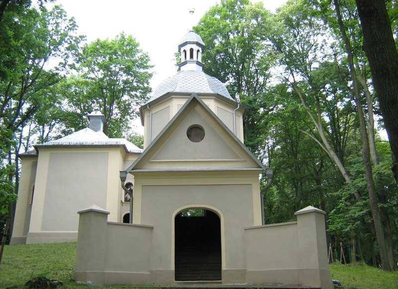 Droga Krzyżowa (odcinek) - Aby przejść wszystkie stacje Męki Pańskiej należy pokonać drogę ponad 6 kilometrów, droga choć bardzo malownicza prowadzi przez wiele wzniesień, czasami bardzo stromych. Kalwaria została wzniesiona staraniem Jerzego Adama de Gaschin. Pierwotnie powstały trzy duże i 30 małych kaplic Męki Pańskiej, a w późniejszym czasie pozostałe. Kaplice kalwaryjskie poświęcono i przekazano franciszkanom w dniu uroczystości Podwyższenia Krzyża Świętego w 1764 roku.