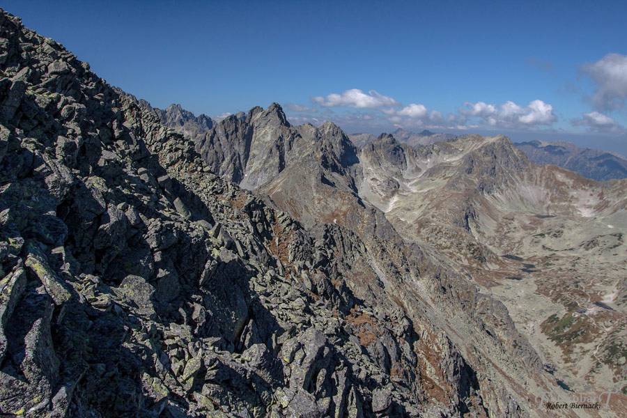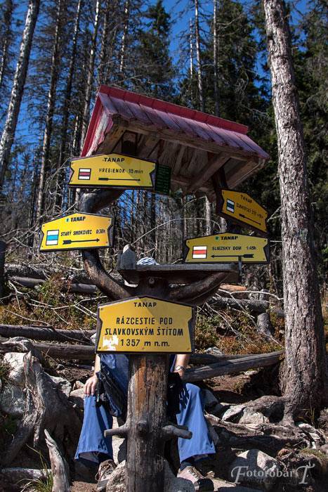 Przepiękna widokowo trasa na Sławkowski Szczyt - 2452 m n.p.m. Wycieczkę zaczynamy w Starym Smokowcu, niebieskim szlakiem rozpoczynającym się po prawej stronie stacji kolejki na Hrebieniok (Smokowieckie Sidełko). Na początku szlak prowadzi drogą szutrową przez resztki lasu, po drodze mamy źródełko, więc zapominalscy mogą nabrać wody :). Po około godzinie dochodzimy do skrzyżowania z czerwonym szlakiem - Magistralą Tatrzańską, przecinamy ją i idziemy dalej niebieskim.