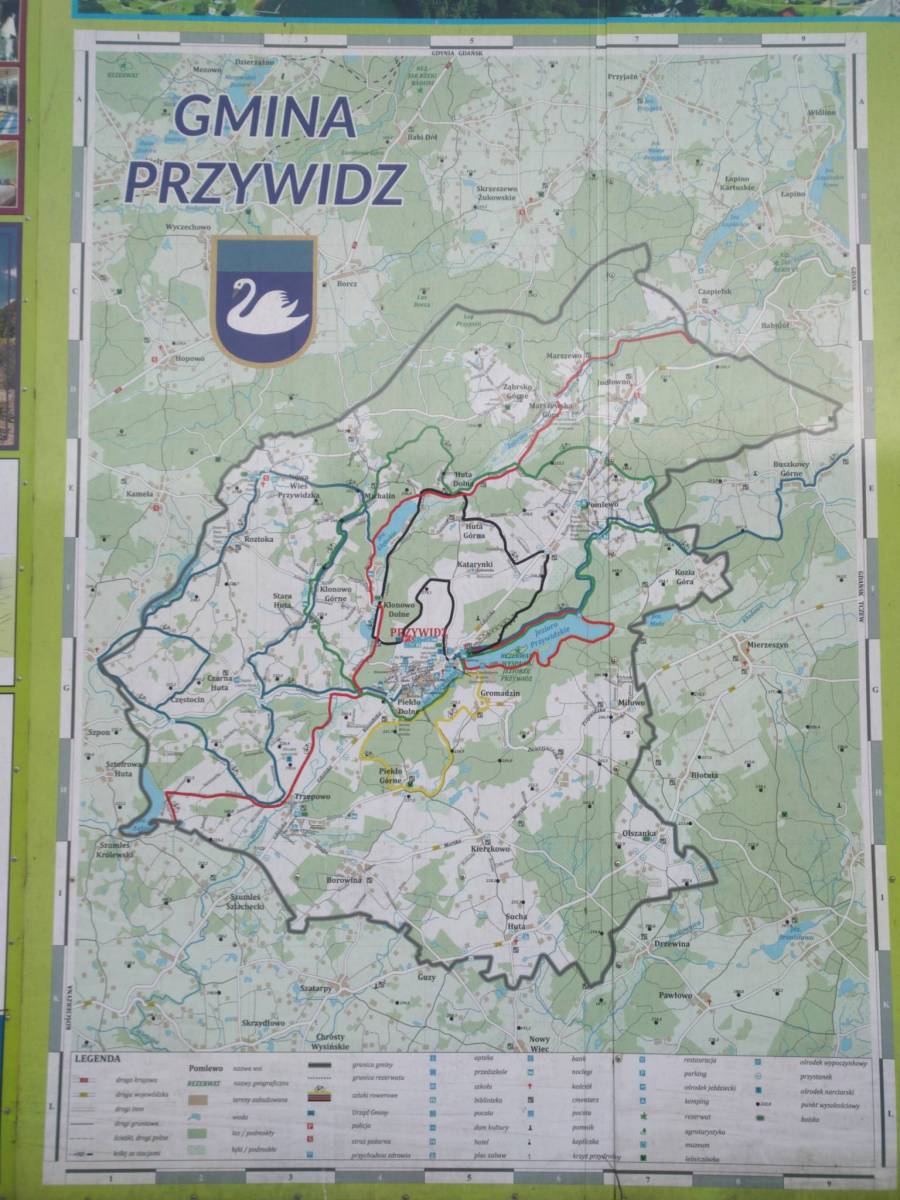 Mapa Kaszub dla rowerzystów i piechurów część północna. Zasięg mapy ograniczony jest miejscowościami: Lipusz i Sulęczyno na zachodzie, Lębork i Nowy Dwór Wejherowski na północy, Żukowo i Przywidz na wschodzie oraz Gołuń i Wdzydze Kiszewskie na południu. Na mapie uwgzlędniono trasy rowerowe, szlaki piesze i Nordic Walking z długościami. Dodatkowo zaznaczone zostały drogi polne, leśne oraz szlaki kajakowe. Są tu też zabytki, noclegi, muzea, punkty widokowe, szczególnie warte odwiedzenia miejsca zaznaczono żółtą ramką.