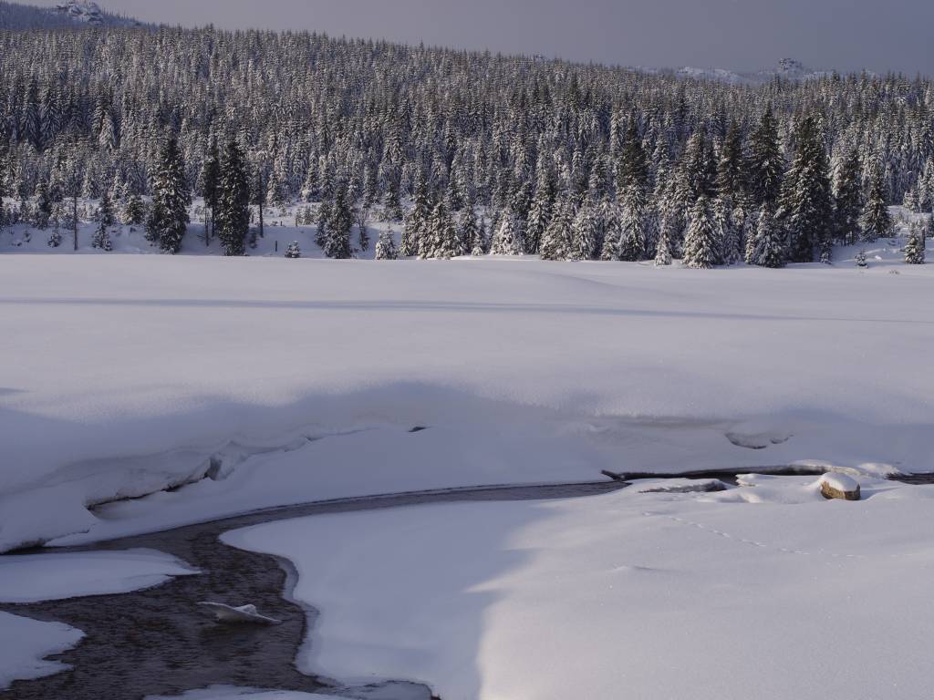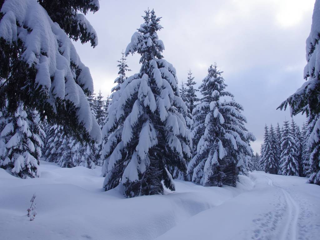 Początkowo było źle, a po chwili gorzej. W lesie wzdłuż Jagnięcego Potoku idąc niebieskim szlakiem mieliśmy duże problemy. Na szczęście szlak doszedł do ratrakowanej trasy narciarstwa biegowego. Od tego momentu było już łatwiej, ale postanowiliśmy zostawić sobie większość izerskiego GSS na lato. Udaliśmy się do Jakuszyc, a następnie koleją do Szklarskiej Poręby.