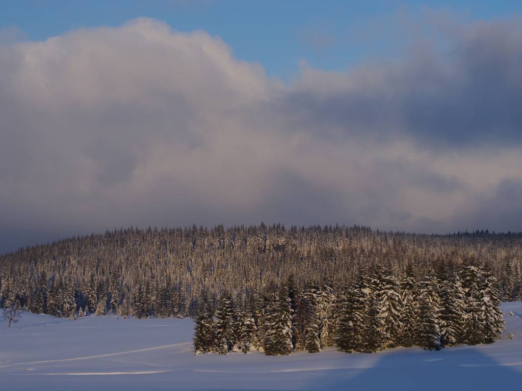 Trasę zaczęliśmy drugiego dnia trochę po 8. Początkowo planowaliśmy udać się żółtym od schroniska, a następnie przejść czerwonym (GSS) do Szklarskiej. Dwie rzeczy zmieniły plany: nie zauważyliśmy żółtego i za daleko poszliśmy niebieskim, oraz obawa przed ilością śniegu na dłuższej trasie niż wczorajsza.