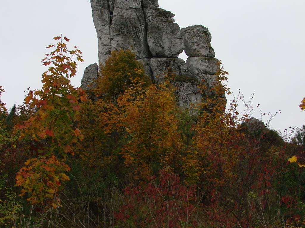 Na początek zielonym szlakiem przez Skałki Rzędkowickie. Jest spokojnie. Na skałkach zaledwie jedna ekipa wspinaczy. Nie spieszę się. Robię zdjęcia i podziwiam Rzędkowickie ostańce. Następnie przez las w stronę Góry Zborów - tam również jest spokojnie zaledwie kilku pasjonatów leśnych darów kręci się. Niestety oznakowanie szlaków na Jurze pozostawia sobie wiele do życzenia... Tracę szlak, przez co nadkładam jakieś 2 km. Trasa nie jest ciężka, ale bardzo przyjemna. W lesie już jesień pełną gębą! Po chwili wracam na szlak, którym docieram na parking pod Górą Zborów. Na szczycie widać już całkiem spory ruch... Po około 15 minutach spokojnej drogi pod górę docieram na szczyt. Kogo tam nie było... Mnóstwo ekip wspinaczkowych, kolaże, panowie w lakierkach i panie na szpilkach, no i oczywiście pielgrzymka z kółka różańcowego - robiąca więcej hałasu niż wszyscy poprzedni razem wzięci... Spotykam na szczycie również pasjonata radiokomunikacji, z którym nie omieszkałem zamienić słówka.