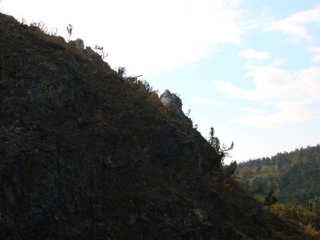 Na szczycie krótki odpoczynek i wygrzewanie się w promieniach słońca :) Jestem dziś sam więc nieco modyfikuję początkowy plan wycieczki. Teraz wygląda to tak: ze szczytu Góry Zborów schodzę do podnóża Kruczych Skał w okolice starego kamieniołomu i Jaskini Głębokiej (niestety zamkniętej). Planowałem chwilkę przysiąść pod kruczymi skałami. Niestety, prześladowała mnie dziś pielgrzymka z kółka różańcowego, która po chwili pojawiła się pod jaskinią, robiąc przy tym tyle hałasu, że chyba wszystko co żywe uciekło (łącznie ze mną). Schodzę do parkingu, ze sto metrów szosą i wracam tym samym zielonym szlakiem, którym przyszedłem.