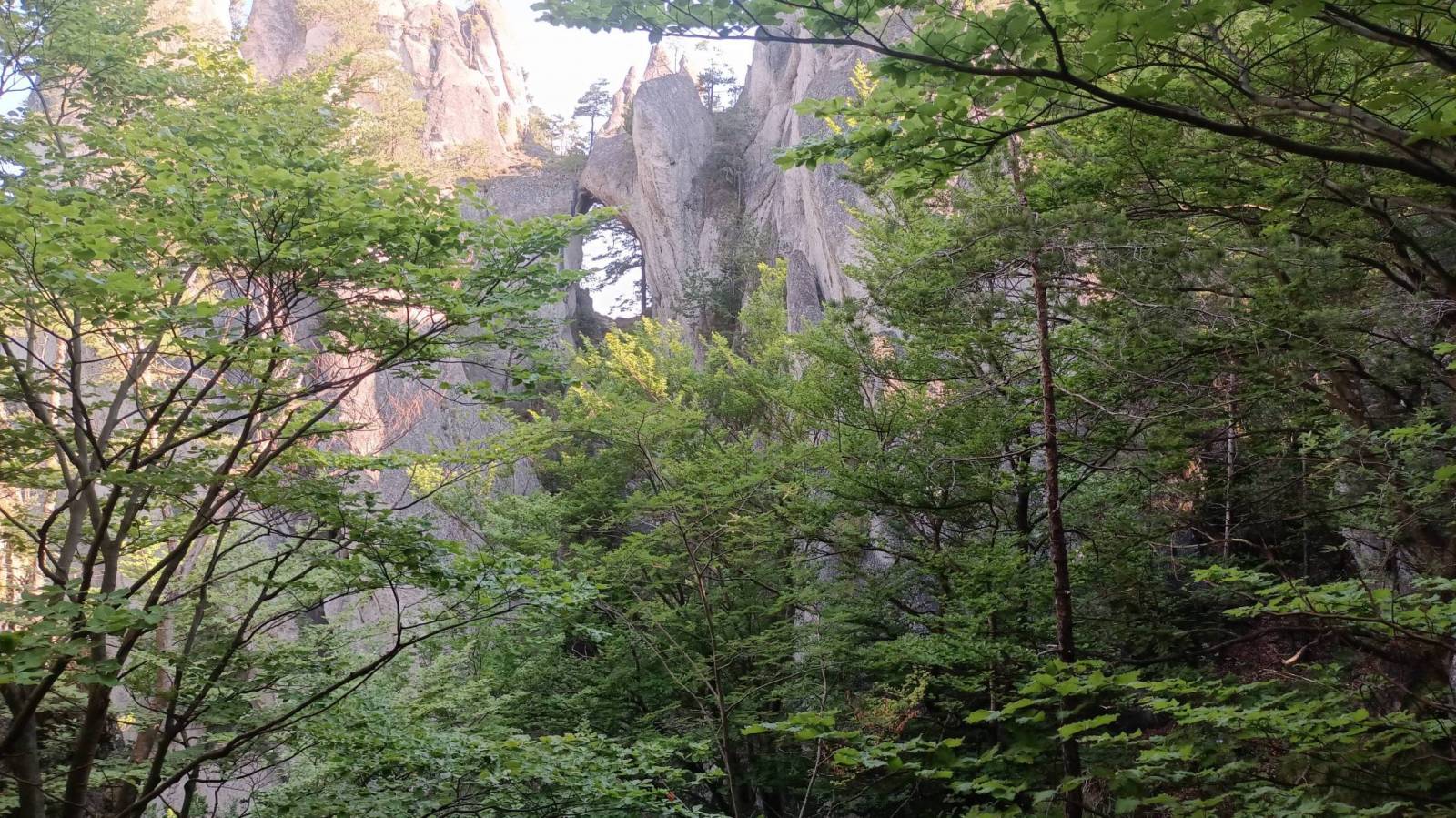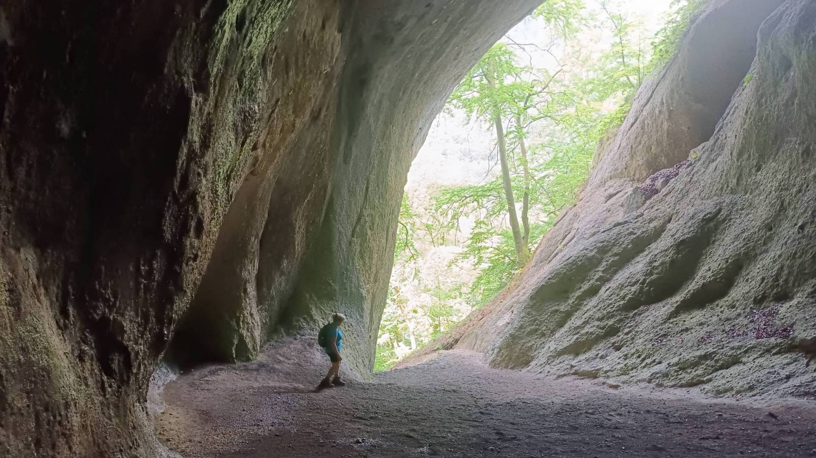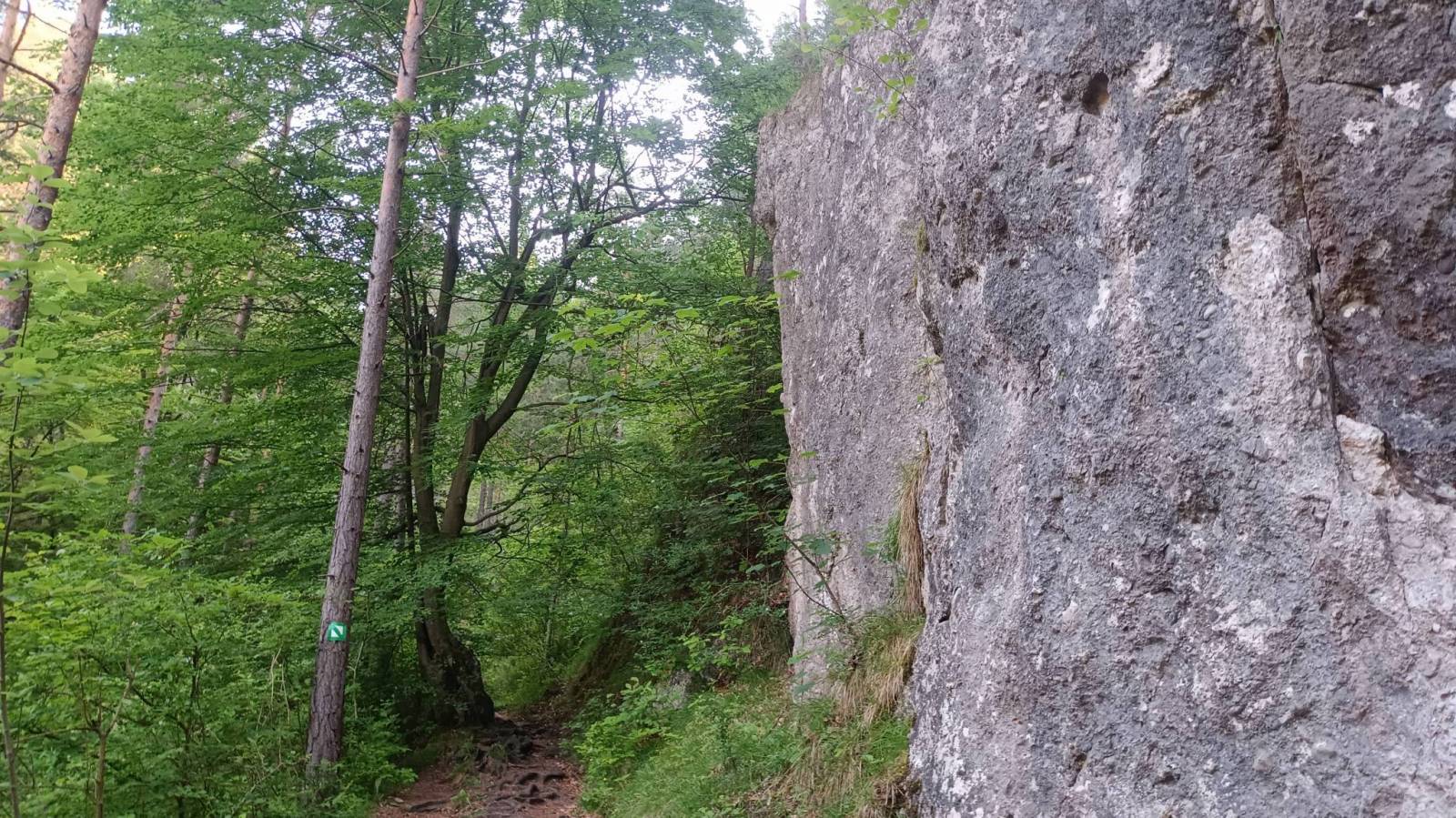 Wycieczka krótka bo czasu mieliśmy mało ale moim zdaniem bardzo atrakcyjna turystycznie. Początek na płatnym parkingu ( 3 euro) przy początku zielonej ścieżki dydaktycznej prowadzącej przez najciekawsze rejony rezerwatu Sulovske Skaly. Pierwsza atrakcja to grupa skalna o nazwie Gotycka Brama. Podziwialiśmy ją z dwóch stron szukając okna skalnego i udało się właściwie przez przypadek. Kolejna i chyba główna atrakcja to ruiny zamku Sulov. Samego zamku to już tam prawie nie ma. Zastały resztki murów ale skały pomiędzy które kiedyś był wciśnięty a zwłaszcza widoki z nich są pierwsza klasa. Na podejściu i zejściu w rejonie zamku są też miejsca ubezpieczone czasem w drabinki czasem klamry oraz łańcuchy. W pogodny dzień raczej nie ma tam trudności ale przy deszczu lub śniegu mogą się przydać bo podejście i zejście fragmentami jest mocno strome. Po dotarciu do skrzyżowania szlaków zmieniliśmy kolor na czerwony a przy kolejnym na żółty. Odcinek czerwony to raczej już jak w Beskidach ale po drodze kilka atrakcyjnych punktów widokowych i ciekawych formacji skalnych. Żółty szlak ponownie sprowadził nas bardzo stromo sypką ścieżką do Polany Pod Rogaczem. Po drodze mijaliśmy drugie, dużo większe niż w Gotyckiej Bramie, Skalne Okno. Ostatnią z atrakcji była jaskinia Sarkania Diera do której prowadzi odboczka szlaku żółtego z Polany pod Rogaczem. Trzeba zasuwać zdrowo pod górę miejscami używając klamer a pod koniec drabin żeby dostać się do ogromnej przestronnej i dobrze oświetlonej światłem dnia jaskini. Szlak jest bardzo sypki co daje się we znaki zwłaszcza przy zejściu bo powrót oczywiście tą samą drogą. Jaskinia jest jednak imponująca i warto sie trochę pomęczyć żeby ją zobaczyć z wnętrza. Powrót na parking nadal szlakiem żółtym raczej w lesie ale jest kilka odcinków odkrytych z cudownymi widokami na ściany skalne otaczające kotlinę w której leży miasteczko Sulov.