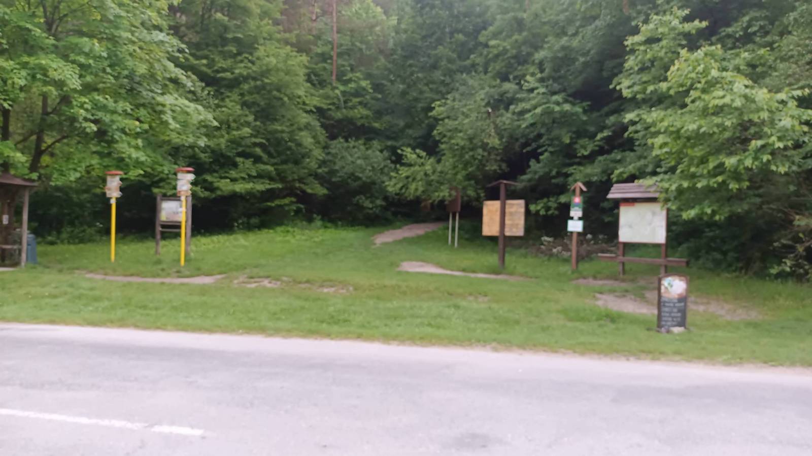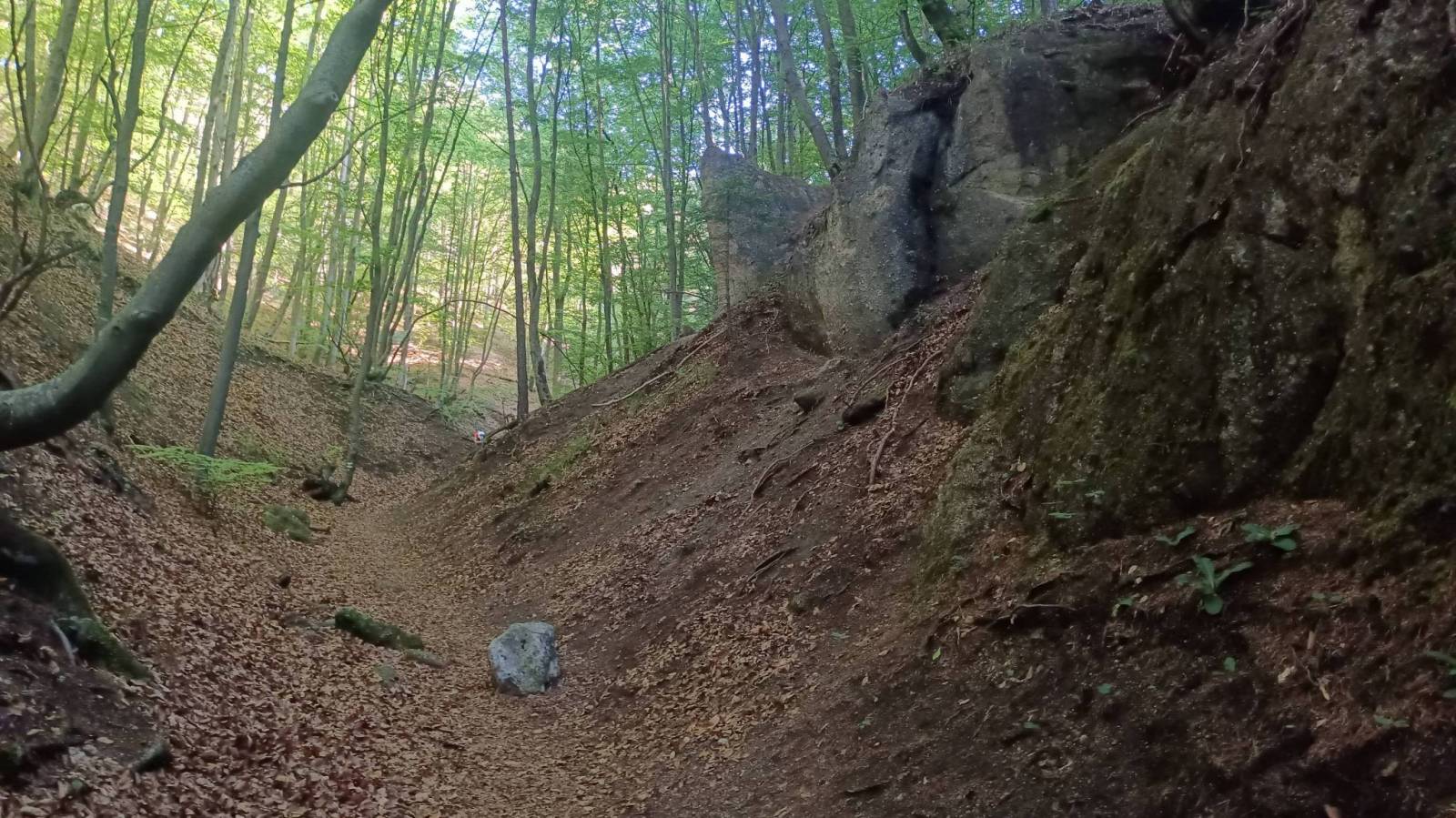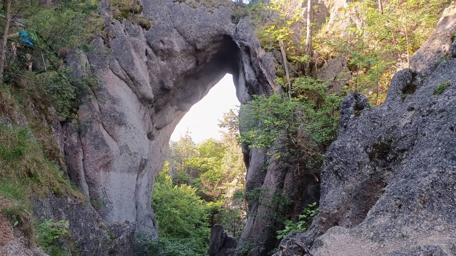 Wycieczka krótka bo czasu mieliśmy mało ale moim zdaniem bardzo atrakcyjna turystycznie. Początek na płatnym parkingu ( 3 euro) przy początku zielonej ścieżki dydaktycznej prowadzącej przez najciekawsze rejony rezerwatu Sulovske Skaly. Pierwsza atrakcja to grupa skalna o nazwie Gotycka Brama. Podziwialiśmy ją z dwóch stron szukając okna skalnego i udało się właściwie przez przypadek. Kolejna i chyba główna atrakcja to ruiny zamku Sulov. Samego zamku to już tam prawie nie ma. Zastały resztki murów ale skały pomiędzy które kiedyś był wciśnięty a zwłaszcza widoki z nich są pierwsza klasa. Na podejściu i zejściu w rejonie zamku są też miejsca ubezpieczone czasem w drabinki czasem klamry oraz łańcuchy. W pogodny dzień raczej nie ma tam trudności ale przy deszczu lub śniegu mogą się przydać bo podejście i zejście fragmentami jest mocno strome. Po dotarciu do skrzyżowania szlaków zmieniliśmy kolor na czerwony a przy kolejnym na żółty. Odcinek czerwony to raczej już jak w Beskidach ale po drodze kilka atrakcyjnych punktów widokowych i ciekawych formacji skalnych. Żółty szlak ponownie sprowadził nas bardzo stromo sypką ścieżką do Polany Pod Rogaczem. Po drodze mijaliśmy drugie, dużo większe niż w Gotyckiej Bramie, Skalne Okno. Ostatnią z atrakcji była jaskinia Sarkania Diera do której prowadzi odboczka szlaku żółtego z Polany pod Rogaczem. Trzeba zasuwać zdrowo pod górę miejscami używając klamer a pod koniec drabin żeby dostać się do ogromnej przestronnej i dobrze oświetlonej światłem dnia jaskini. Szlak jest bardzo sypki co daje się we znaki zwłaszcza przy zejściu bo powrót oczywiście tą samą drogą. Jaskinia jest jednak imponująca i warto sie trochę pomęczyć żeby ją zobaczyć z wnętrza. Powrót na parking nadal szlakiem żółtym raczej w lesie ale jest kilka odcinków odkrytych z cudownymi widokami na ściany skalne otaczające kotlinę w której leży miasteczko Sulov.