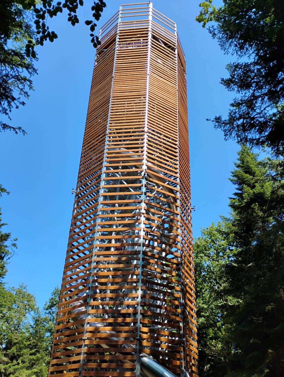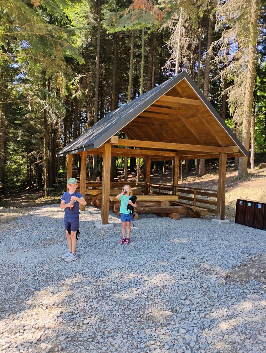 Krótka wycieczka na nowo otwartą wieżę widokową w Dominikowiach, na górze Łysula 551 m.n.p.m. w pobliżu Gorlic. Wyruszyć można z jednego z dwóch parkingów pomiędzy Dominikowicami a górą Łysula. Lepszy jest ten nieco wyżej gdyż znajduję się przy samym zejściu na szlak. Cała trasa w obie strony to okolo 3 km. więc naprawdę niedużo. Droga którą idziemy to fragment Zielonego Szlaku biegnącego z Gorlic do Folusza przez Łysulę, Wapienne, Ferdel (wieża Widokowa) i Rezerwat Kornuty. Zaraz za parkingiem znajduje się wiata deszczoschron ze stolikami i ławeczkami. Gdzieś w około płowie podejścia, na polanie widokowej, znajdują się kolejne ławeczki, wiata oraz platforma widokowa w formie gigantycznej ławeczki. Po 20 minutach ciągłego marszu ( my z przystankami na zdjęcia po około 40 min) dociera się na szczyt Łysuli na którym znajduje się ponad 25 metrowa wieża widokowa z 54 metrową rurą do zjazdu. Wejście jest darmowe. Przy wejściu znajduję się bramka która chyba zamyka się przy określonej liczbie zwiedzających ze względu na bezpieczeństwo. Na szczycie wieży znajdują się tabliczki informacyjne o pobliskich widocznych szczytach oraz pamiątkowa pieczątka. Piętro niżej początek rury zjazdowej. Światla zielone i czerwone informują kiedy rura jest wolna do zjazdu. Cała konstruncja jest tez pod monitoringiem. Zjazd trwa około 12 sekund. W rurze co kilka metrów są świetliki więc nie zjeżdża się w ciemnościach. Pierwszą polowe zjazdu fajnie się zjeżdża a w drugiej pojawiają się pewne wibracje co zwiększa przeżycia i emocje. Pod wieżą znajdą się kolejne ławeczki i stoliki gdzie rodzice mogą sobie poczekać na dzieciaki aż się wyszaleją. Ogólnie atrakcja jest super i dodatkowo totalnie bezplatna. Zbiegamy z góry pierwszy odcinek. Zamiast dalej schodzić asfaltem wybieramy biegnącą równolegle leśną drogę krzyżową.