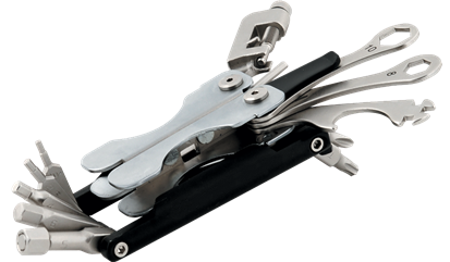 A co w przypadku innych awarii? Warto zaopatrzyć się również w z angielska nazwane narzędzie Multitool. To narzędzie przypominające scyzoryk potrafi zrobić wiele. Różnorodność multitooli na rynku jest tak znaczna, że warto przed zakupem zastanowić się jakiego potrzebujemy. Najlepszy wybór to taki „scyzoryk”, który ma swoim arsenale w miarę dużą gamę podręcznych i niezbędnych narzędzi. Powinien zawierać zestaw kluczy imbusowych, płaskich lub oczkowych dostosowanych do śrub w naszym rowerze. Ważne jest, by przed kupnem takiego narzędzia sprawdzić czego dokładnie potrzebuje nasz rower. Niektóre modele tych wielozadaniowych narzędzi wyposażone są także w skuwacz do łańcucha.