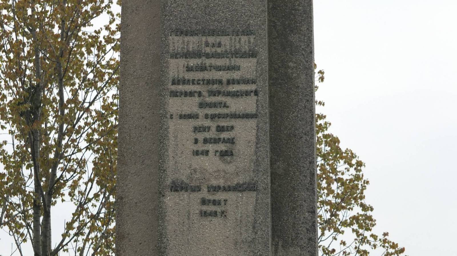 Po drodze, w okolicach m. Mikolin obok mostu na Odrze mijamy pomnik upamiętniający forsowanie tej rzeki przez żołnierzy I Frontu Ukraińskiego Armii Radzieckiej w lutym 1945.