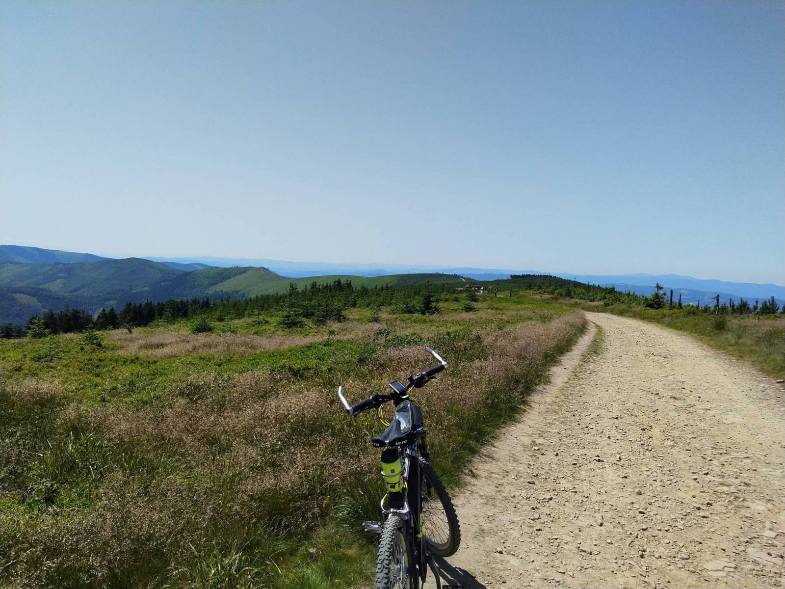 Podjazd Z Ostrego. Potem szlakiem szczytowym przez Małe Skrzyczne do Malinowskiej Skały. Stamtąd zjazd do, a jakże, Malinowa.