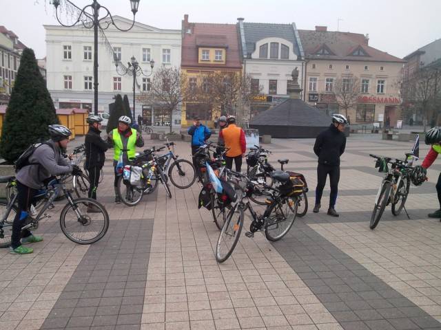 Rano dosyć chłodno (około 3 stopni celsjusza) i mgliście. Ale czas ruszać. Spotykamy się o 9.00 na rybnickim rynku. Jest nas 14. Pamiątkowe zdjęcie. Ruszamy w drogę około 9.15. Kierujemy się do Rud. W Rudach mały postój pod Klasztorem cysterskim. Tam dojeżdżają do nas 2 koleżanki. Po małym postoju ruszamy do wsi Bargłówka gdzie u sołtysa zwiedzamy skansen. Tam dołączają do nas Wycieczki Rowerowe Śląsk (WRŚ). Po zwiedzeniu skansenu ruszamy zwartą grupą (jakieś 50 rowerzystów) w dalszą trasę lasami rudzkimi. Jedziemy przez Kuźnię Raciborską gdzie w lesie mijamy lotnisko i robimy mały postój. Docieramy do miejsca pamięci i grobów gdzie w 1992 roku zginęli podczas służby strażacy gaszący olbrzymi pożar lasów i zapalamy znicz. Z tego miejsca kręcimy do Rud gdzie mieści się Bar Pod Lipami. Tam czeka na nas ciepła kiełbaska z ogniska. Po zregenerowaniu sił ruszamy w drogę powrotną do Rybnika. Rusza z nami Jasiek, który to jeździ na jednokołowcu. Naprawdę chłopak wzbudził u mnie podziw za swoją pasję i 3mam za niego kciuki aby tej pasji nigdy nie stracił. Nad Zalewem rybnickim mały postój gdzie jak się okazało grupa się przez przypadek rozjechała. Ruszamy na rybnicki rynek skąd startowaliśmy. Jeszcze podjeżdżamy pod Bazylikę św. Antoniego. Tam kończymy dzisiejszą wycieczkę i rozjeżdżamy się każdy w swoim kierunku domu.