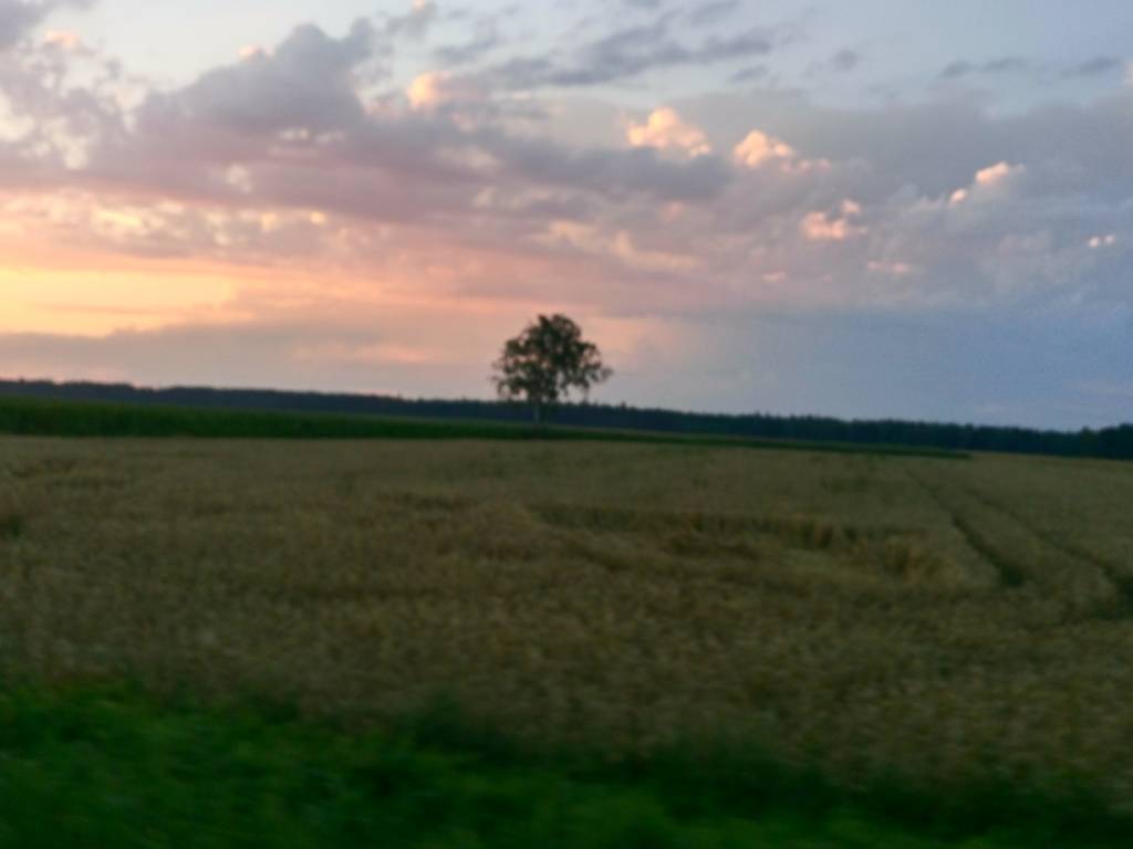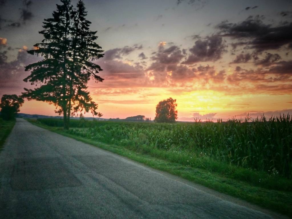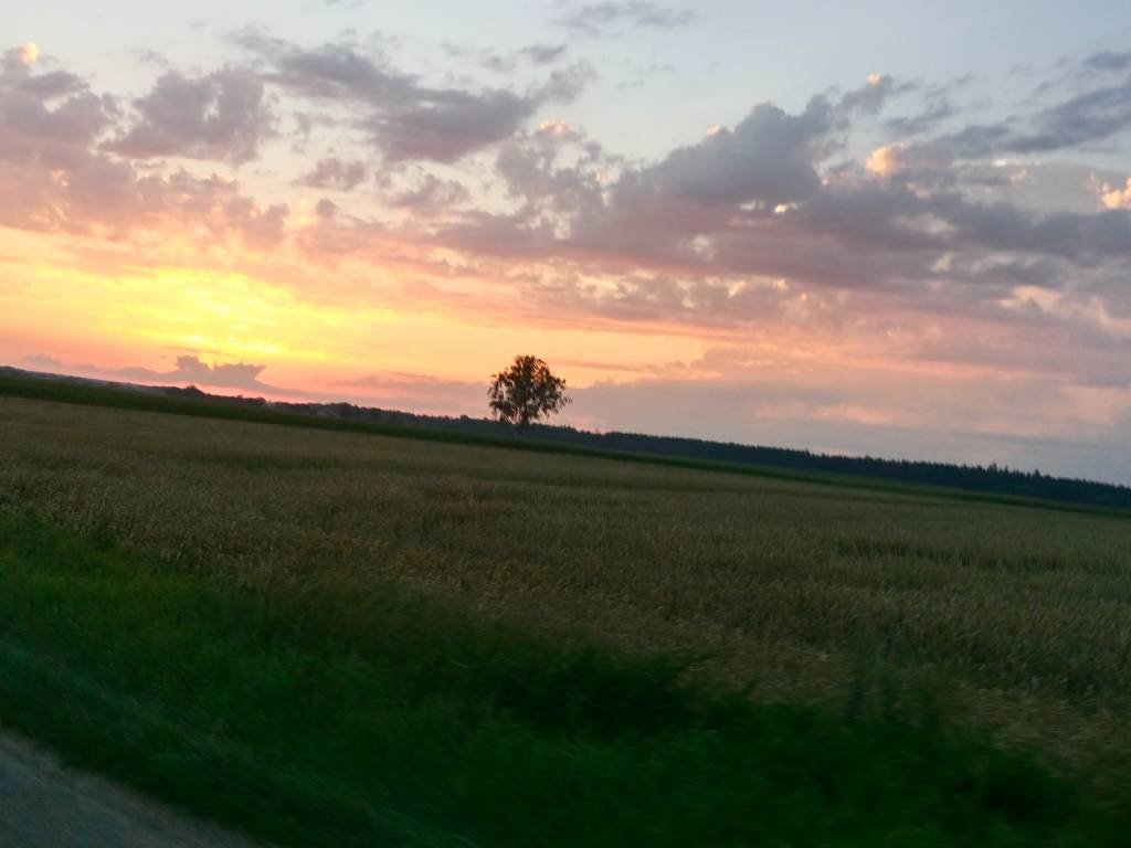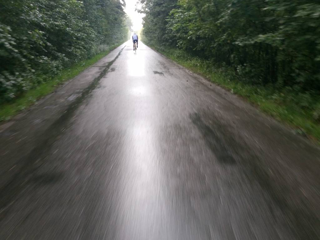 Od kilku dni upały iście afrykańskie i przy tym burze. Na krótko przyd naszym wyjazdem przeszła nad Zambrowem mała ulewa. Wyjechaliśmy z nastawieniem, ze pojedziemy w kierunku Szumowa, lecz wiszące chmury wymusiły na nas zmianę kierunku. W ostateczności skierowaliśmy się do Jabłonki Kościelnej i dalej do Rutek. W okolicach Święcka dopadł nas deszcz, który przy świecącym słońcu całkiem dobrze popadał. Ale jak to z letnim deszczem, krótko i lokalnie padał. Po przejechaniu ok 5km droga była już sucha.