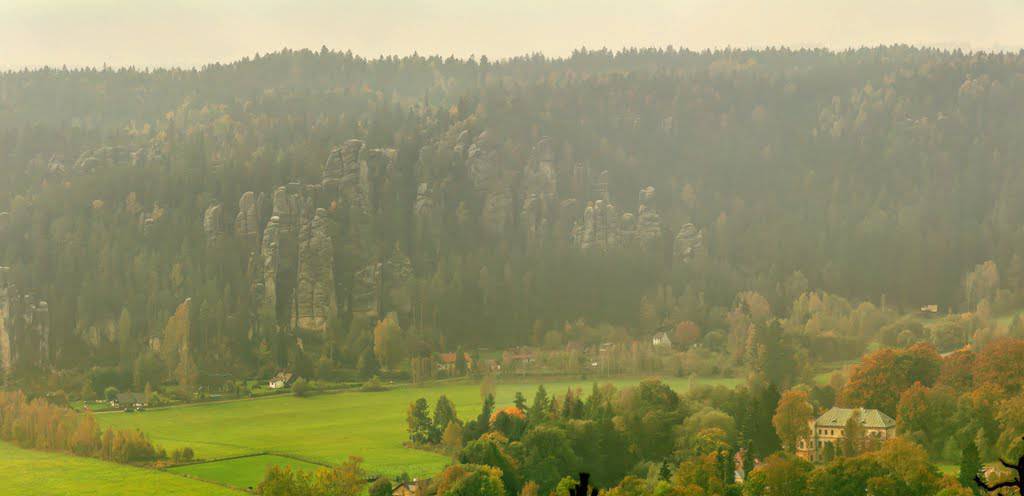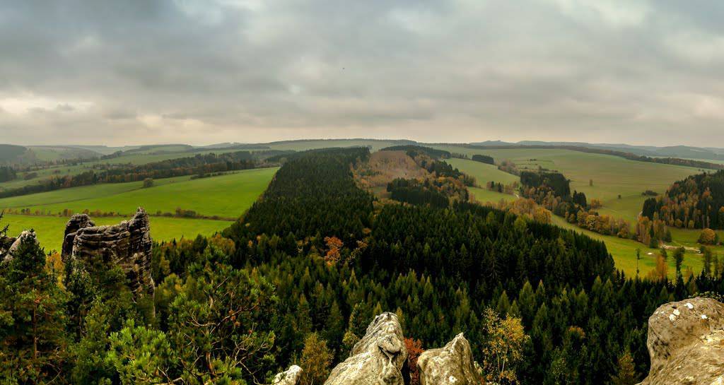 Mapa obejmuje bardzo atrakcyjną turystycznie czeską część Gór Stołowych. Podobnie jak w polskiej części masywu, także ten region obfituje w przeróżne ciekawe formacje skalne. Ciekawym szczytem Broumowskich Ścian jest leżąca nieopodal Koruna z punktem widokowym i interesującymi formacjami skalnymi na szczycie, natomiast za największą atrakcję uchodzi góra Hvězda (674 m n.p.m.), na której szczycie, na skalnej krawędzi, znajduje się barokowa kaplica Matki Boskiej Śnieżnej, wykonana z piaskowca ciosowego (zbudowana na podstawie pięcioramiennej gwiazdy). Miasta skalne znajdujące się w Adršpašskoteplickich skálach są jednym z najbardziej znanych piaskowcowych terenów wspinaczkowych na świecie. Między labiryntami form skalnych przebiega płatna trasa turystyczna niewymagająca żadnej wprawy przy chodzeniu po górach, składająca się z wygodnych schodków, poręczy, drabin i miejscami sztucznie wybudowanych chodników i platform. W pobliżu znajduje się też Teplickie Skalne Miasto – nieco mniej znane od Adršpašskoteplickich skál, lecz rozleglejsze, wyższe i bardziej dzikie.