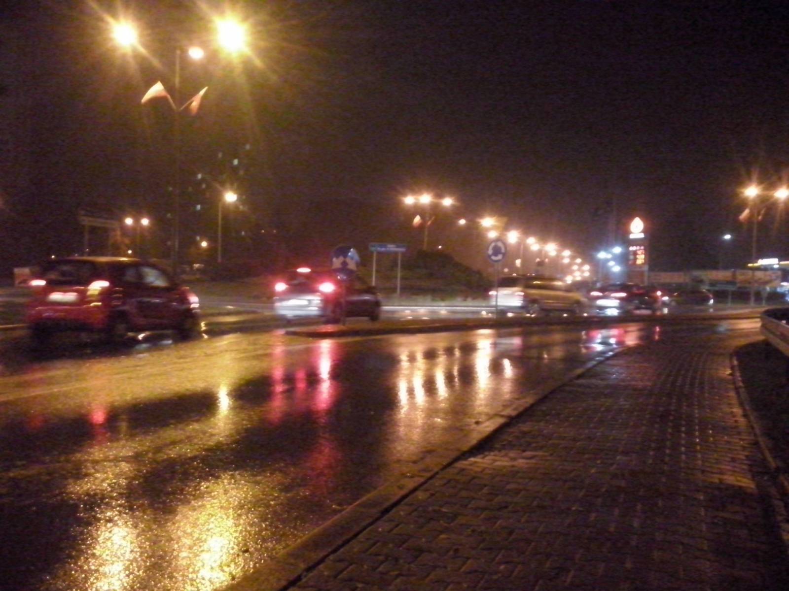 Treningowe rundki szosowe w deszczu po al. Jana Pawła II