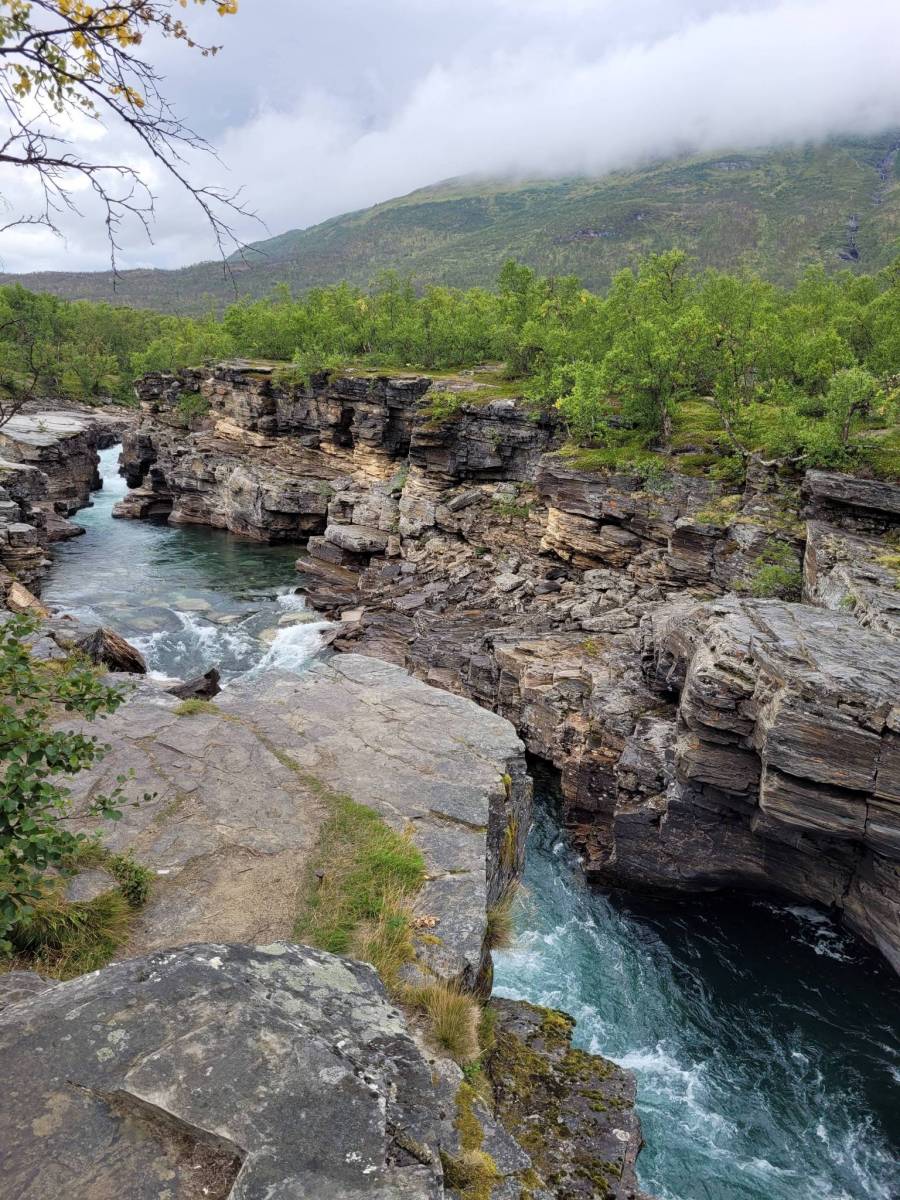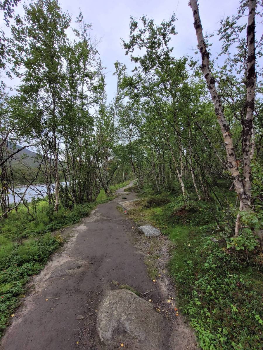 Łatwy spacer po torfowiskach Parku Narodowego Abisko, w pobliżu przełomu rzeki Abiskojokk. Warto zboczyć nad kanion rzeki Abisko żeby zobaczyć malownicze formacje skalne. Na torfowiskach porośniętych dereniem szwedzkim i bażyną czarną można zobaczyć stada reniferów. Piękne przestrzenie, da się tu poczuć Północ przez duże "P".