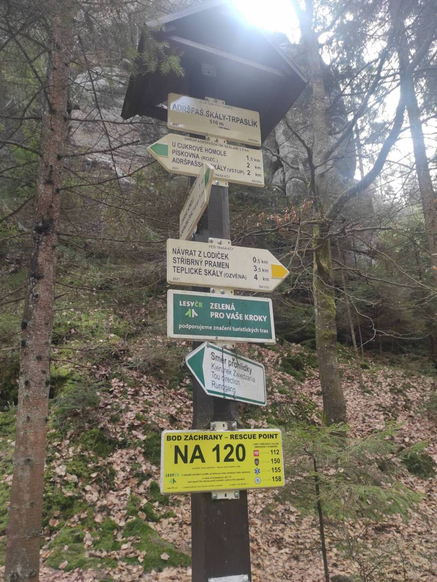 Mapa obejmuje bardzo atrakcyjną turystycznie czeską część Gór Stołowych. Podobnie jak w polskiej części masywu, także ten region obfituje w przeróżne ciekawe formacje skalne. Ciekawym szczytem Broumowskich Ścian jest leżąca nieopodal Koruna z punktem widokowym i interesującymi formacjami skalnymi na szczycie, natomiast za największą atrakcję uchodzi góra Hvězda (674 m n.p.m.), na której szczycie, na skalnej krawędzi, znajduje się barokowa kaplica Matki Boskiej Śnieżnej, wykonana z piaskowca ciosowego (zbudowana na podstawie pięcioramiennej gwiazdy). Miasta skalne znajdujące się w Adršpašskoteplickich skálach są jednym z najbardziej znanych piaskowcowych terenów wspinaczkowych na świecie. Między labiryntami form skalnych przebiega płatna trasa turystyczna niewymagająca żadnej wprawy przy chodzeniu po górach, składająca się z wygodnych schodków, poręczy, drabin i miejscami sztucznie wybudowanych chodników i platform. W pobliżu znajduje się też Teplickie Skalne Miasto – nieco mniej znane od Adršpašskoteplickich skál, lecz rozleglejsze, wyższe i bardziej dzikie.