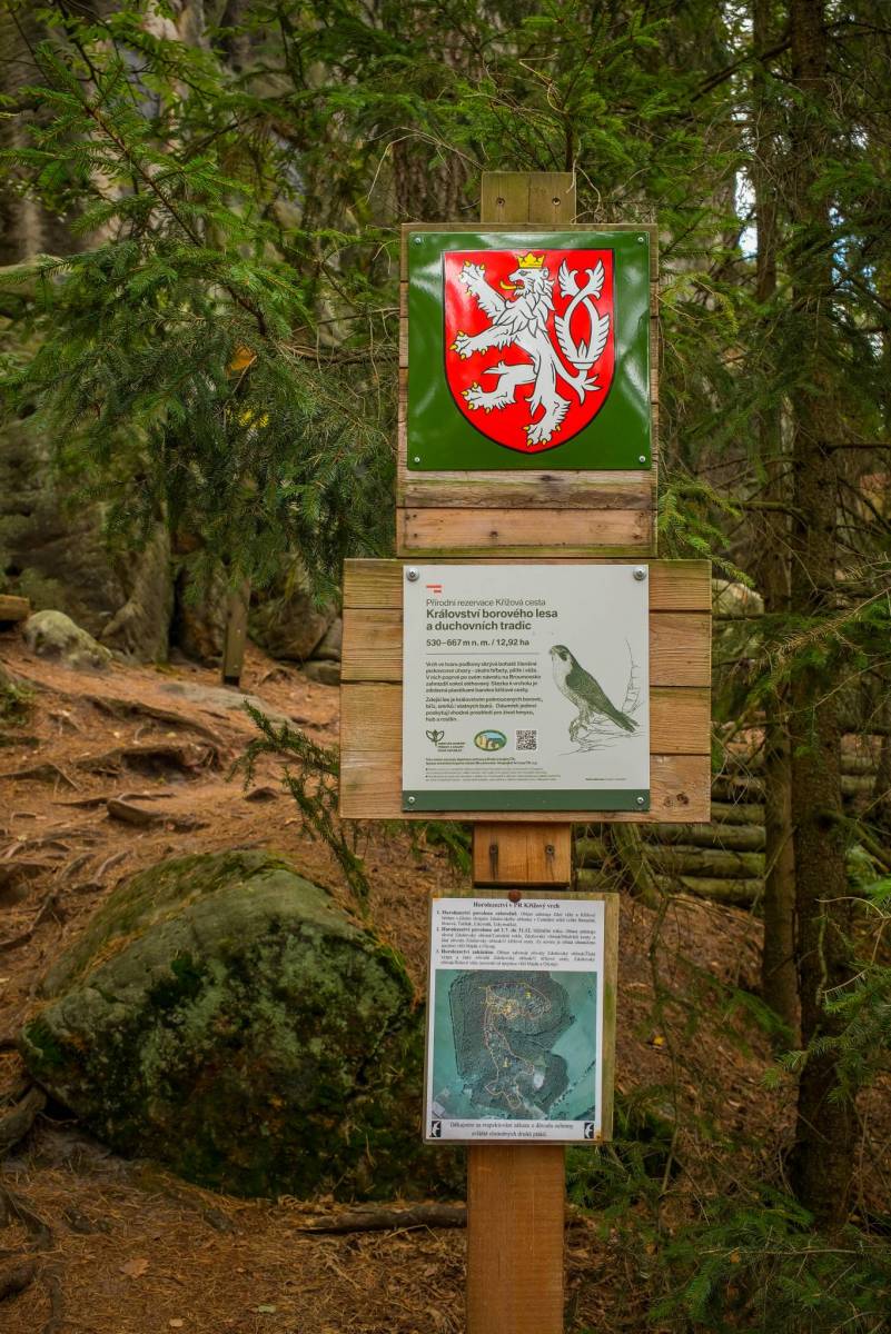 Mapa obejmuje bardzo atrakcyjną turystycznie czeską część Gór Stołowych. Podobnie jak w polskiej części masywu, także ten region obfituje w przeróżne ciekawe formacje skalne. Ciekawym szczytem Broumowskich Ścian jest leżąca nieopodal Koruna z punktem widokowym i interesującymi formacjami skalnymi na szczycie, natomiast za największą atrakcję uchodzi góra Hvězda (674 m n.p.m.), na której szczycie, na skalnej krawędzi, znajduje się barokowa kaplica Matki Boskiej Śnieżnej, wykonana z piaskowca ciosowego (zbudowana na podstawie pięcioramiennej gwiazdy). Miasta skalne znajdujące się w Adršpašskoteplickich skálach są jednym z najbardziej znanych piaskowcowych terenów wspinaczkowych na świecie. Między labiryntami form skalnych przebiega płatna trasa turystyczna niewymagająca żadnej wprawy przy chodzeniu po górach, składająca się z wygodnych schodków, poręczy, drabin i miejscami sztucznie wybudowanych chodników i platform. W pobliżu znajduje się też Teplickie Skalne Miasto – nieco mniej znane od Adršpašskoteplickich skál, lecz rozleglejsze, wyższe i bardziej dzikie.