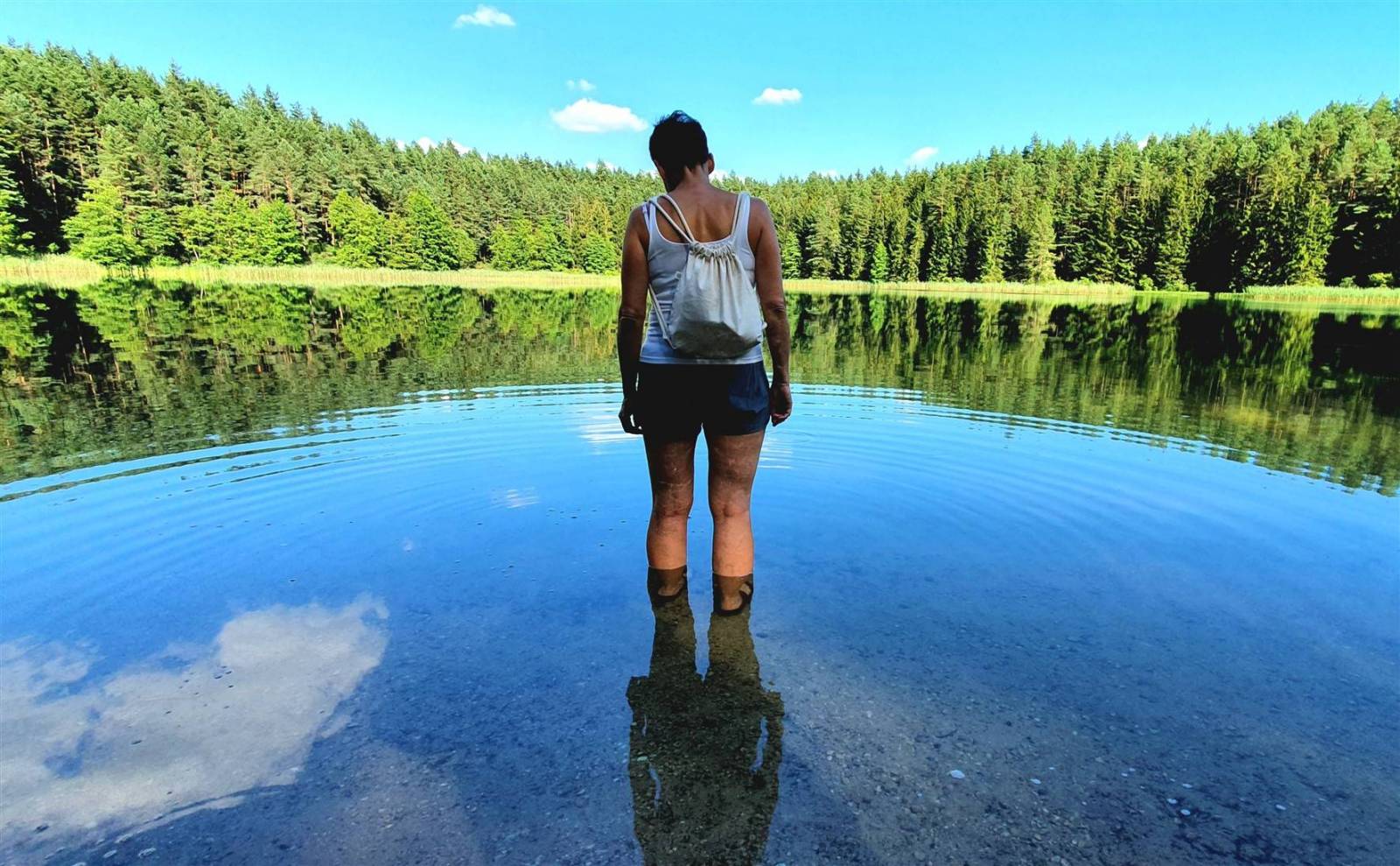 Krótko i łatwo, po drodze punkty informacyjne, które warto poczytać, są też okopy poniemieckie. Samo jezioro Gałęziste bardzo malownicze. Zwłaszcza gdy nie ma turystów.