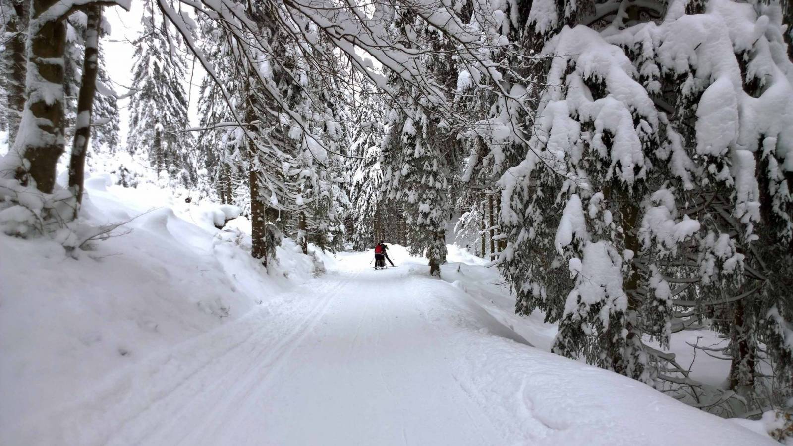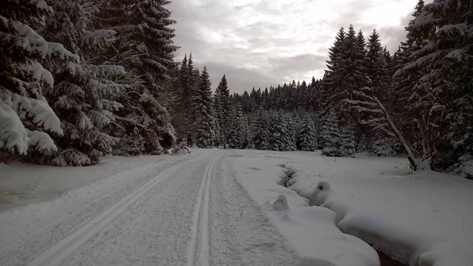 Dziś krótka trasa biegowa z Bielic w kierunku granicy z Czechami , tzw. Białym Spławem . Pomimo ,że to poniedziałek , parking w Bielicach prawie całkowicie zapełniony . Na trasach nie ma tłoku , ale pojedyncze osoby się trafiają . Warunki do biegania idealne , tor twardy , minus 7 stopni . W drodze powrotnej zaczyna padać śnieg coś się w pogodzie zmienia :)