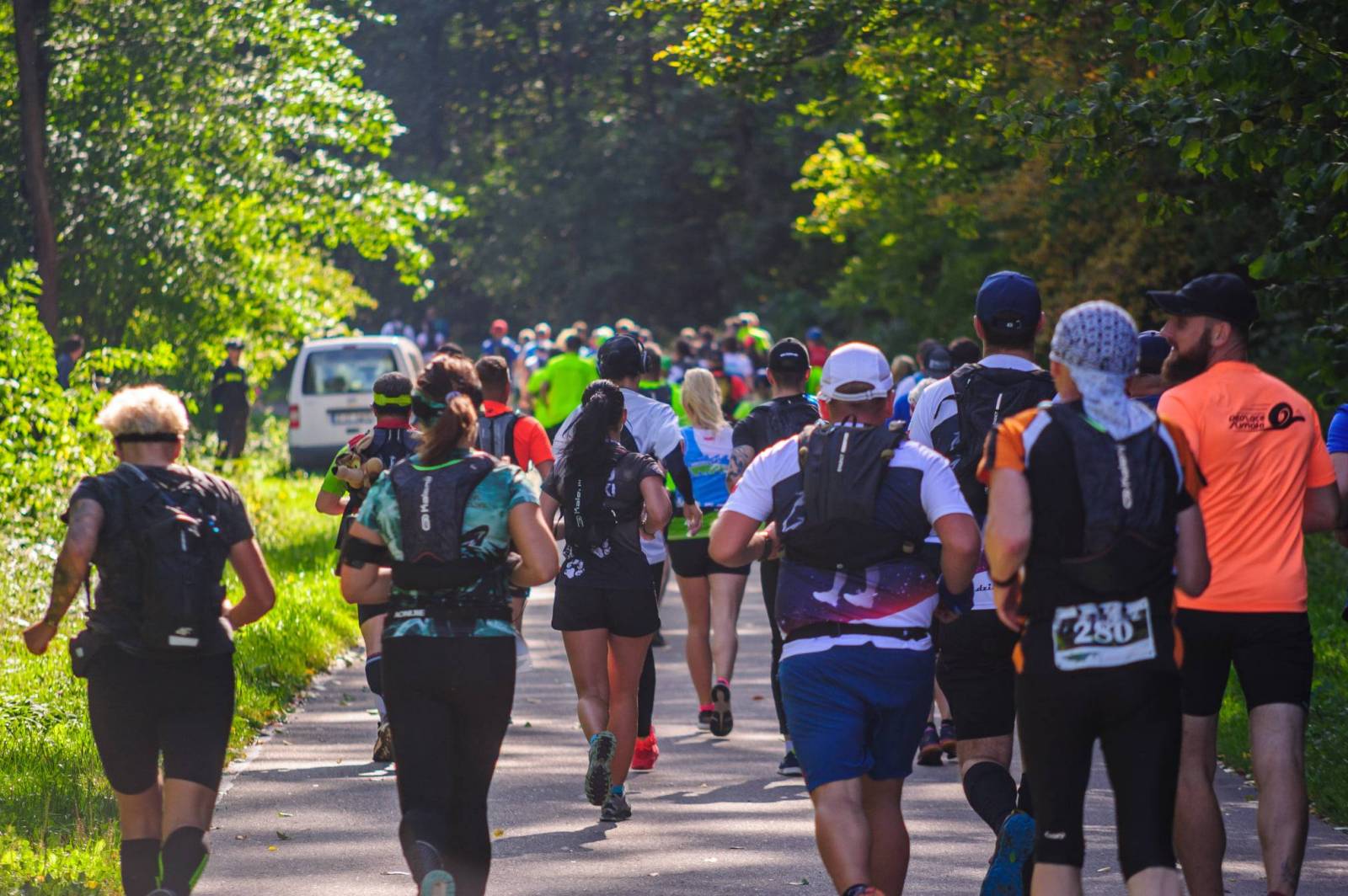 Postanowiłem powrócić do jednego z moich pierwszych biegów , które robiłem w Polsce. Bieg Beskidnika trasa 21 km. Do dyspozycji były jeszcze dwa dystansy jeden 6 km trochę jak dla mnie za krótki, przebiega w całości po trasie 2i km oraz poraz pierwszy ultra z dystansem ponad 60 km. Na 60 km bałem się że nie dam rady pokonać go w limicie czasu.Trasa wiec dobrze mi znana. Jako że biegne po raz drugi więc nie trzeba mówić, że impreza dobrze organizowana w miare tanim pakietem. Tego roku były czapeczki z daszkiem z logo biegu oraz kubeczki próżnowe ze stali nierdzewnej z karabinkiem jako ucho. Mimo że troche małych rozmiarów no ale cóż za to mniej waża wiec bardziej nadadadzą sią na biegi gdzie trzeba mieć własny kubeczek. Bieg na dystansie 21 km startuje jako ostatni. Jedyna brzydka rzecz na tym biegu, która się mi niepodoba to pierwszy 1,5 km odcinek asfaltowy oraz końcowy km również asfaltowy. Na początku lekko pod górkę w tłumie, który cię ciągnie masz niezły start. Jednak zanim dobiegnie się do górskich ścieżek już się jest padnientym. Dobrze że później robi się bardziej stromo i tłocznie więc zwalnia się do marszu i można spokojnie złapać oddech. Na końcówce znów jest za to lekko z górki, ty o tym dobrze wiesz, jednak po 20 km nie dajesz już rady przebierać nogami asfalt się nie kończy i wydaje ci się że chyba mimo wszystko biegniesz pod górkę. Mnie tam jeszcze za każdym razem łapały skurcze. Na trasie mija się kilka ciekawych punktów. Niestety jak to podczas biegu bywa skupionemu na tasie ławo je przeoczyć. Pierwszy to na około 2,3 km trasy Wodospad Magurski tuż przed schodkami na lewo od trasy.Mimo że jest największym wodospadem Beskidu Niskiego za pierwszy razem go przeoczyłem. Podobnie z Diablim Kamieniem, 3,7 km.tuż przwd zbiegiem po schodkach na których jesteś skupiony i nie rozglądasz się na boki.Na 4,5 km rozdziela sie trasa biegu na 6 km i ci na 21 km zaczynają najdłuższe podejście aż szczyt Magury Wątkowskiej 846 m.n.p.m. na 8,3 km. Tam na górze znajduje się jedyny na tzm dystansie punkt odżywczy. Jest woda, niestety zimna ale nie grymaśmy gdyż jesteśmy na szczycie i nie łatwo było tu wnieść rzeczy. Jest też coca cola, ciastka, owoce. W pobliżu znajduje sie miedzy innymi pomnik pamieci Jana Pawła II, stacja meteo z termometrem, pieczątka ze szczytu, Magura to jeden ze szczytów należacy do korony BN. Kolejny odcinek tasy aż do 15,5 km, wiec całkiem spory, to biegnięcie granią masywu Magury. Przebiegamy przez Wątkową, Magure Jasielską, Kornuty. Do Kornutów trasa jest taka pofałdowana, lekkie podbiegi i zbiegi. Dalej jest już przyjemnie lekko w dół gdze można nieźle pocisnąć. Na 15,5 kmrobimy nawrót prawie o 360 stopni i zaczynamy zbieg czarnym szlakiem w strone Folusza. Pod koniec zbieg robi się dość techniczny wiec ktoś wprawny w zbiegach po kamorach i korzeniach na krętych trasach ma tu spore szanse się wykazać. Nieco po 18 km zbieg się konczy i zaczyna się ostatni odcinek lekko w dół aż do mostku gdze pozostaje nam już ostatni km asfaltem tam gdzie pewnie niejeden łapie jak ja skurcze i najbardziej klnie ile jeszcze do końca. Na mecie czeka na nas gorąca grochówa i herbata. Tego roku było dużo wiecej, co mnie ucieszyło, fotografów na trasie oraz materiał video z biegu.