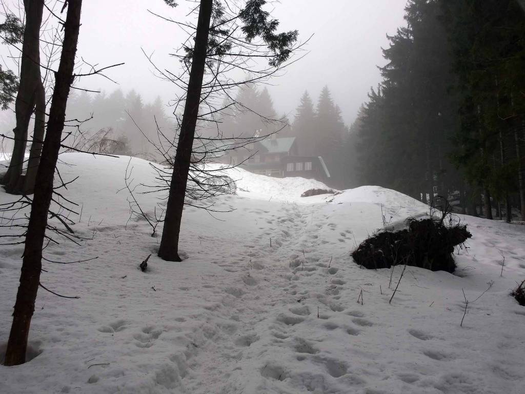 Po wczorajszej szarży , dziś postanowiłem odpocząć . Nawet na chwilę błysnęło słońce, więc może przełęcz Stribrincka . Niestety pogoda się zmieniła , nadciągały chmury , mgła i jakby śnieg .