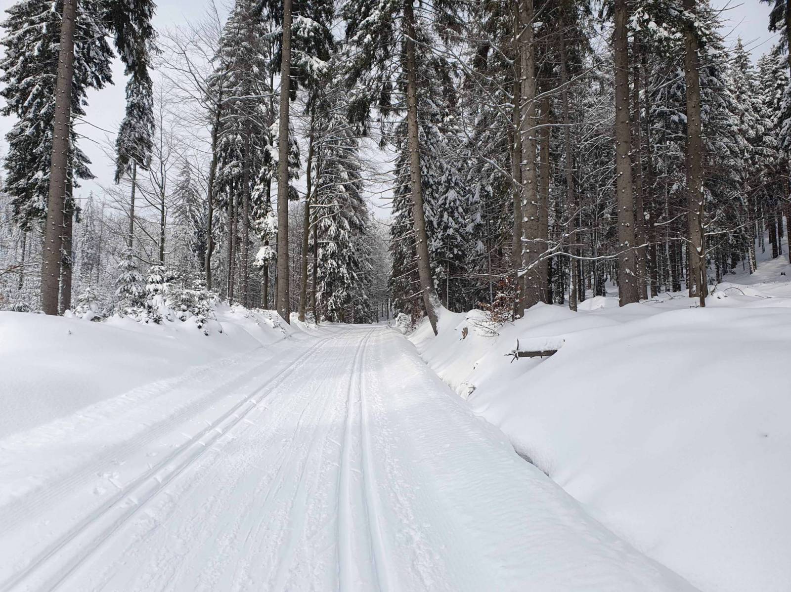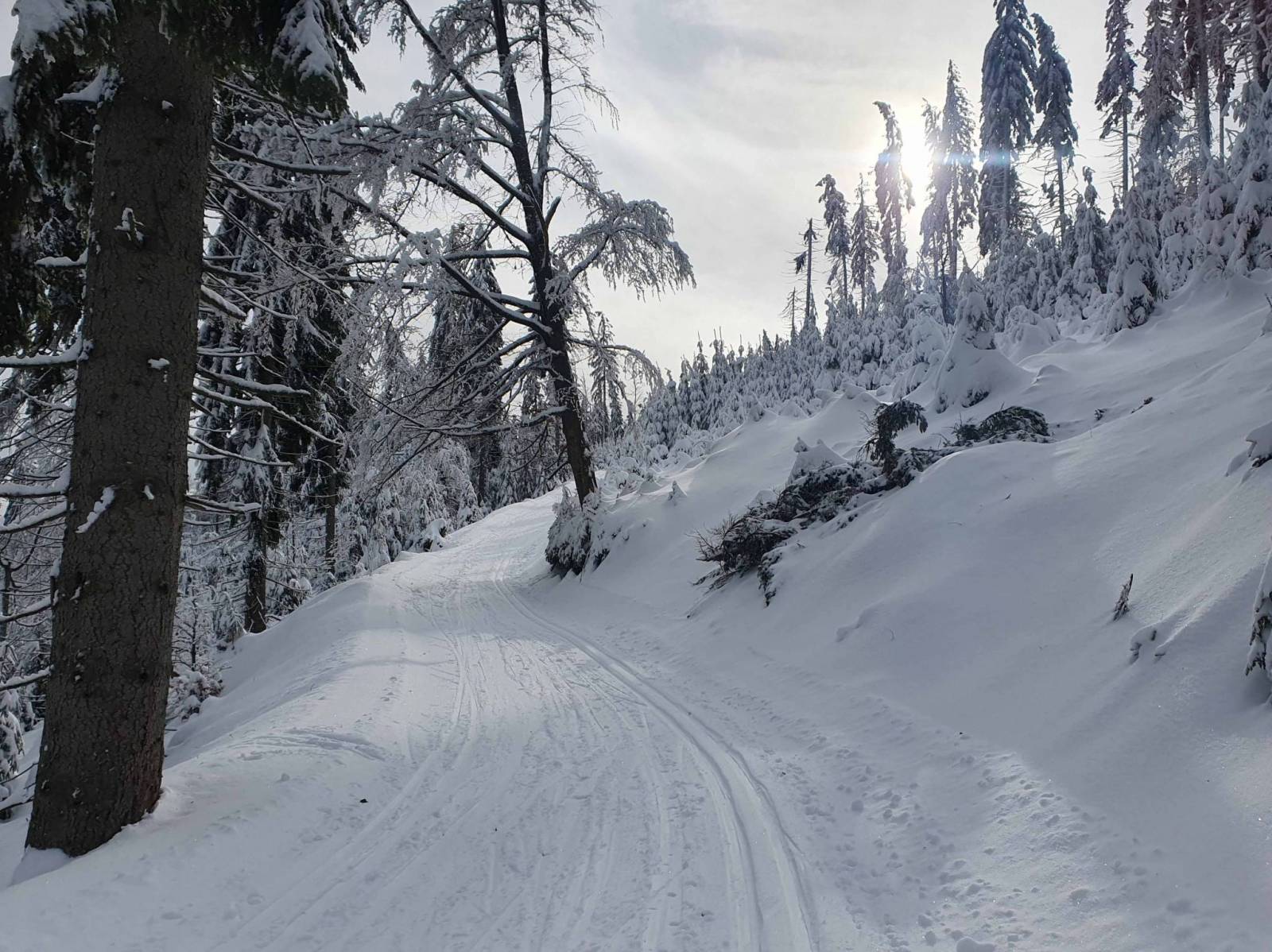 Zima w tym roku dopisała . Śniegu pod dostatkiem , a dziś dodatkowo lekki mrozik . Do 11 na parkingu w Bielicach tłoku nie ma . Wybieram dziś trasę po której odbywa się bieg pod nazwą Ultra Biel . Najtrudniejszy odcinek , podbieg wymagający a i zjechać trudno . Trasy przygotowane perfekcyjnie a i tłoku na trasie nie ma.