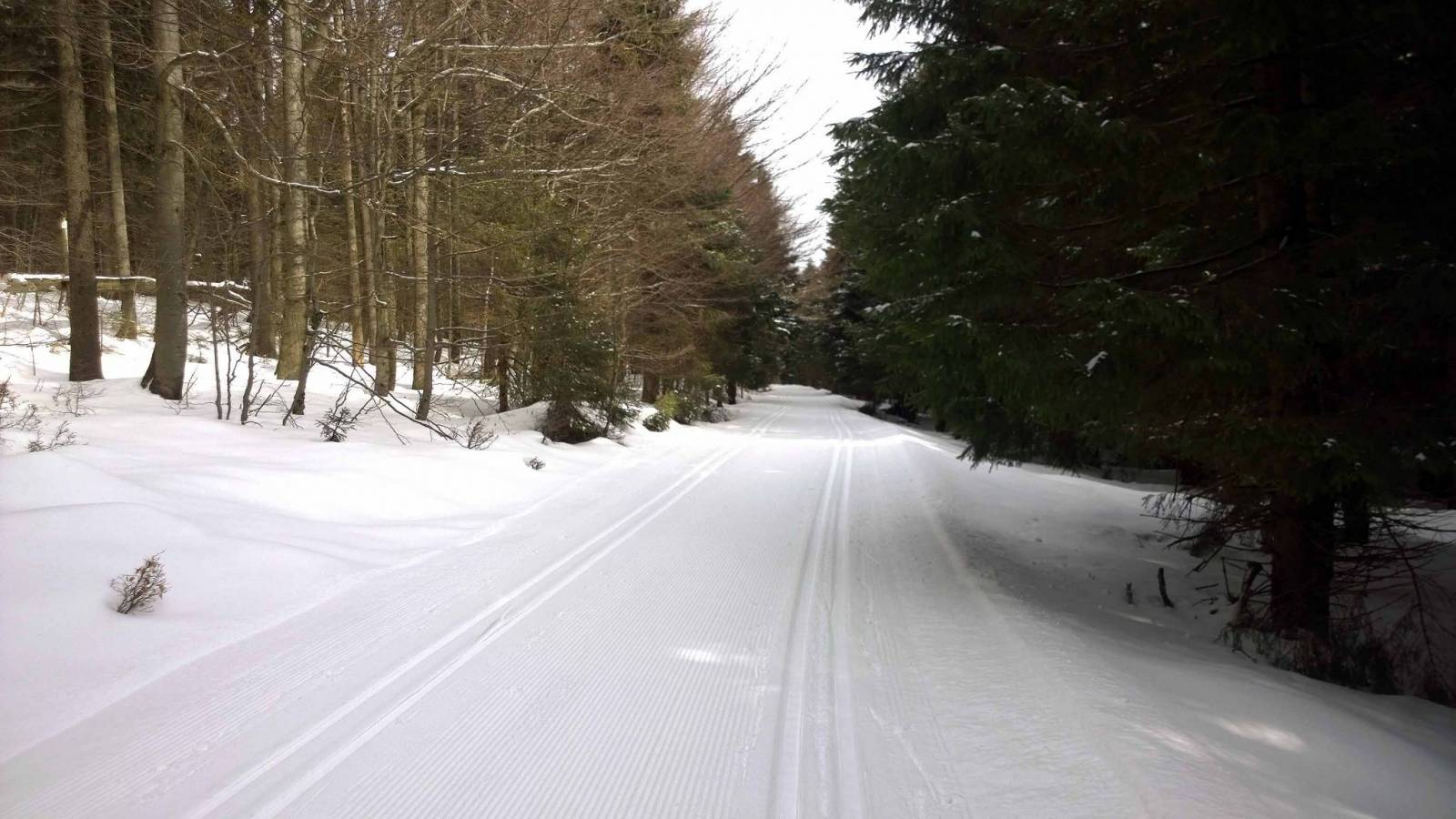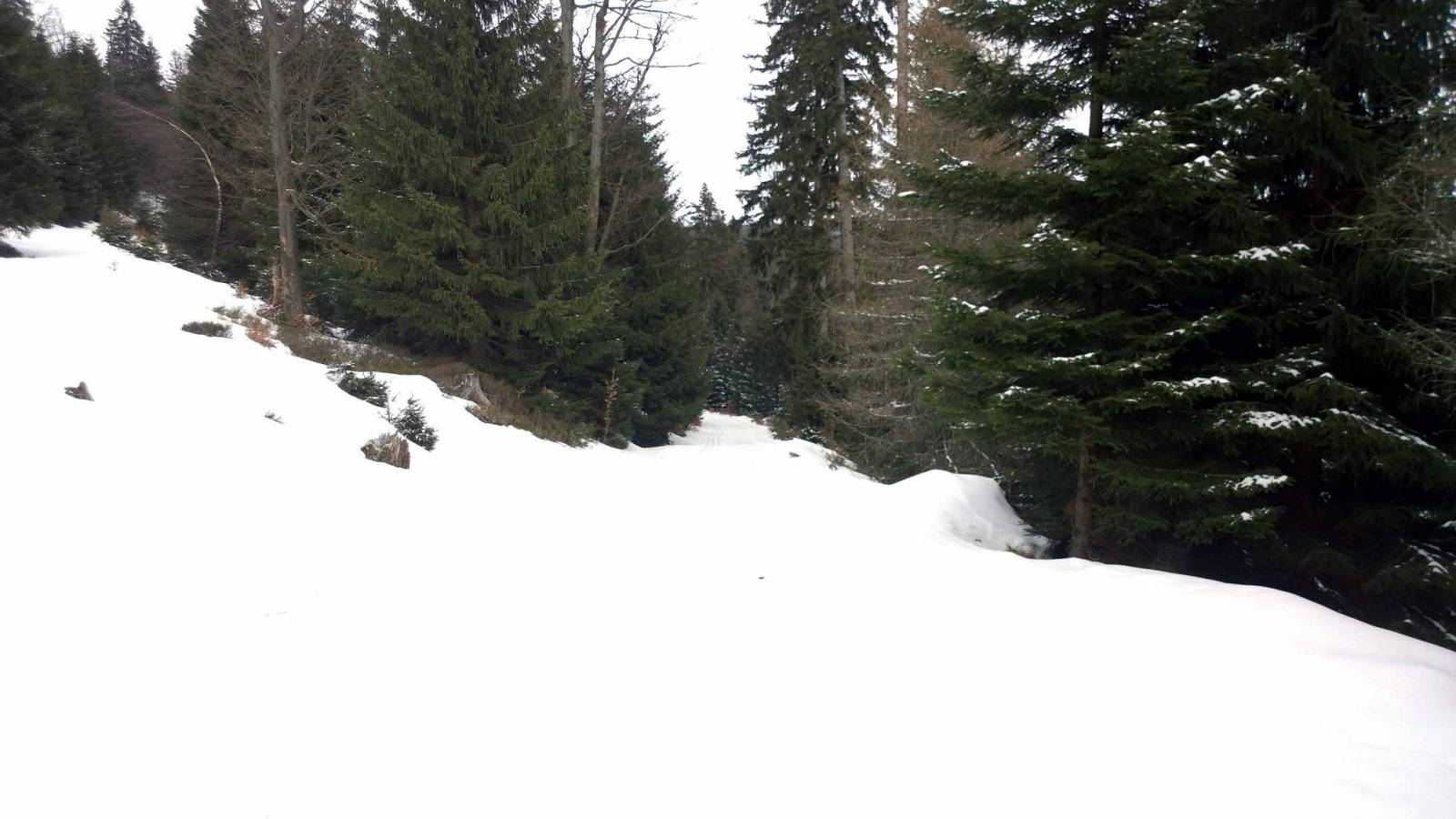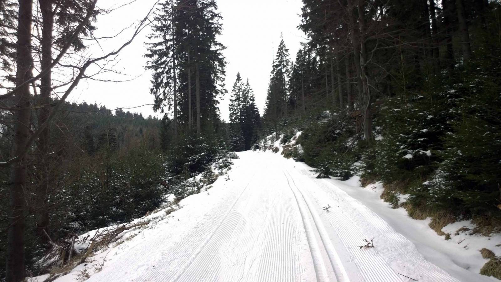 Po wczorajszym trudnym biegu , dziś nie za bardzo mi się chciało ruszać z domu . Ale pogoda ładna i jednak nadzieja ,że dziś ratrak na trasy wyruszył . I faktycznie , ratrak o pięknej nazwie MIŚ , przygotował trasy po polskiej stronie . Dziś biegnę utarty torem z Bielic do Wielkiego Szengena . Tym razem biegnę w stronę Suchej przełęczy , ale chcę do parkingu zjechać "łącznikiem ". Dziś biegnie się dobrze , śnieg się nie klei , biegaczy jak na lekarstwo . Przed Suchą przełęczą spotykam znajomą , biegnie w przeciwną stronę , trochę szkoda .
