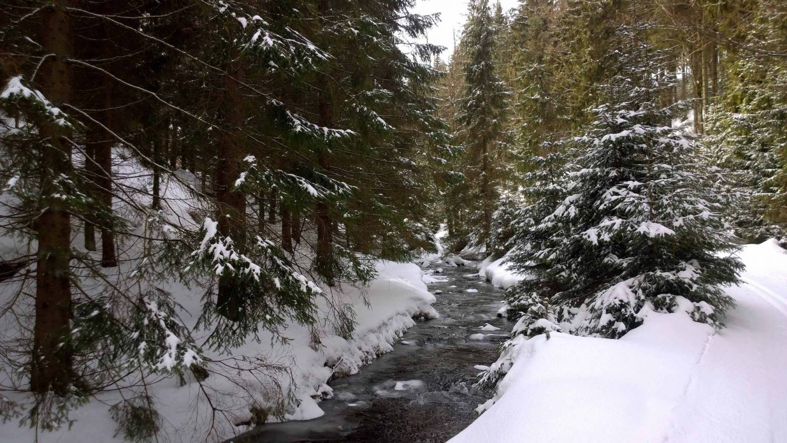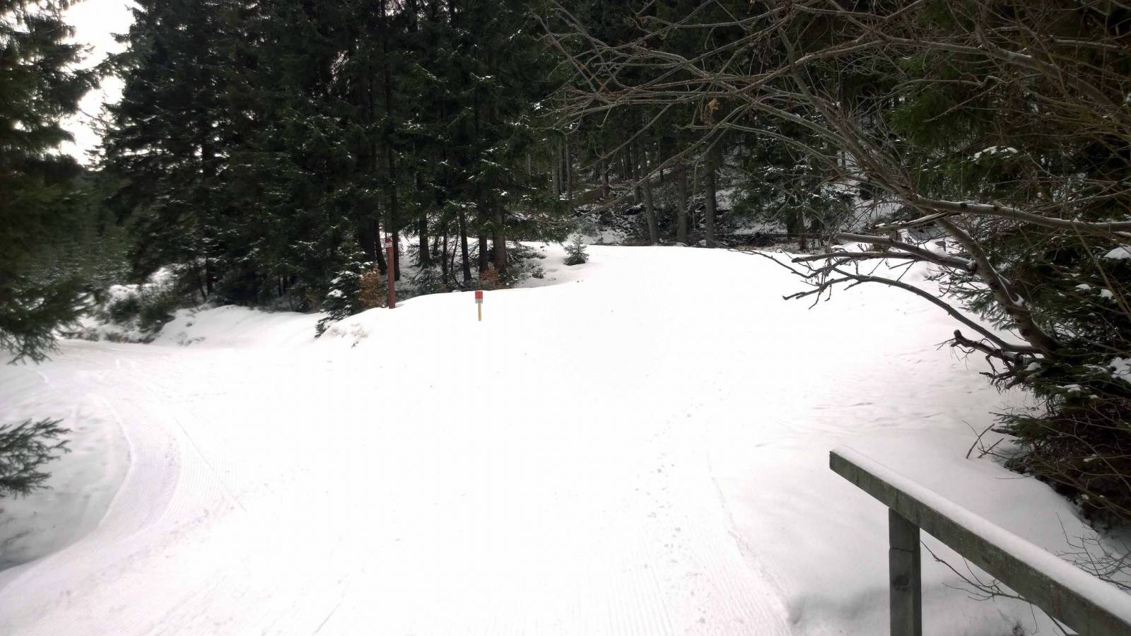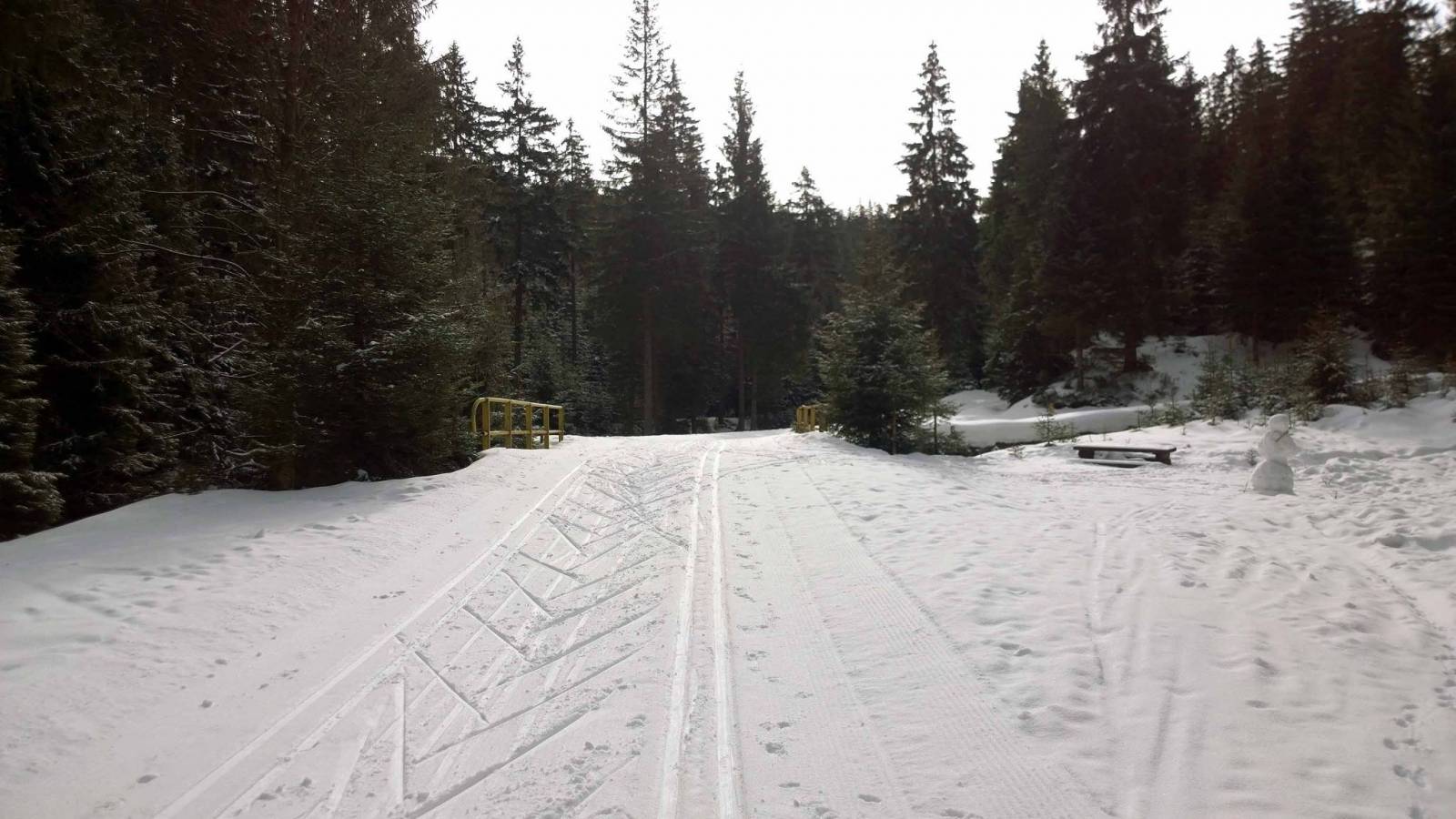 Po wczorajszym trudnym biegu , dziś nie za bardzo mi się chciało ruszać z domu . Ale pogoda ładna i jednak nadzieja ,że dziś ratrak na trasy wyruszył . I faktycznie , ratrak o pięknej nazwie MIŚ , przygotował trasy po polskiej stronie . Dziś biegnę utarty torem z Bielic do Wielkiego Szengena . Tym razem biegnę w stronę Suchej przełęczy , ale chcę do parkingu zjechać "łącznikiem ". Dziś biegnie się dobrze , śnieg się nie klei , biegaczy jak na lekarstwo . Przed Suchą przełęczą spotykam znajomą , biegnie w przeciwną stronę , trochę szkoda .