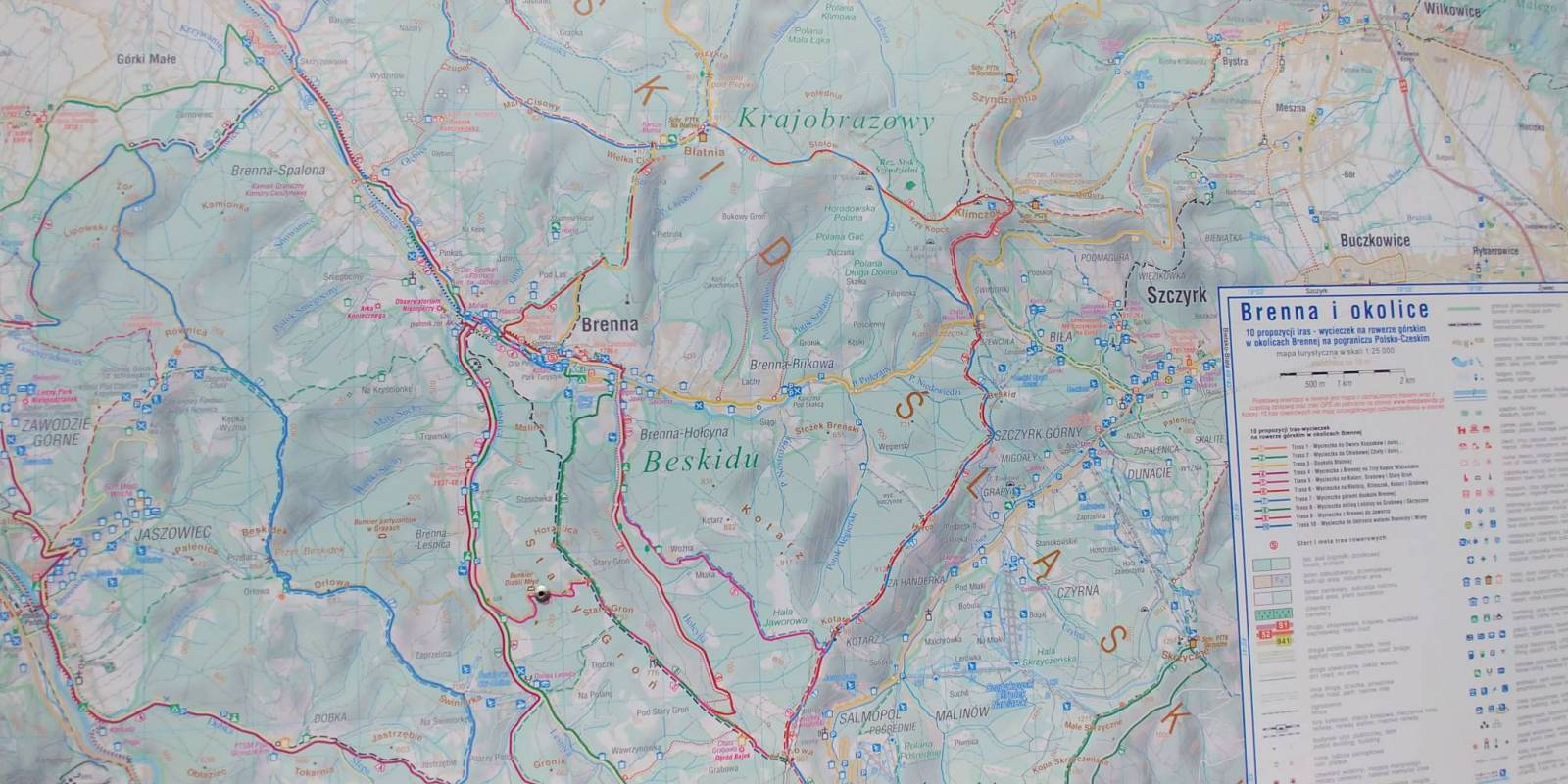 Mapa turystyczna „Szczyrk” obejmuje swoim obszarem gminę Szczyrk, a także częściowo sąsiadujące miejscowości m.in. wschodnią część Brennej, Buczkowice.