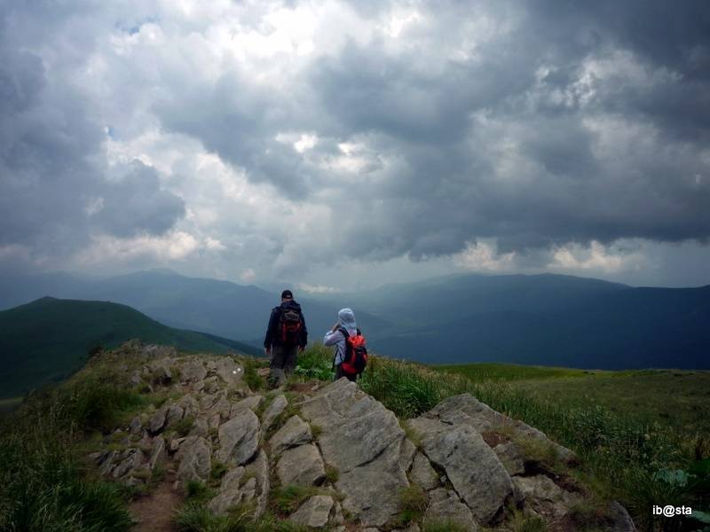 Czerwonym szlakiem Brzegi Górne - Połonina Caryńska - Ustrzyki Górne. Jak zwykle baza wypadowa w Wetlinie dojazd do Brzegów i powrót z Ustrzyk busem. Tym razem pogoda była mocno w kratkę ale przynajmniej momentami wędrowaliśmy z "głowami w chmurach" ;)