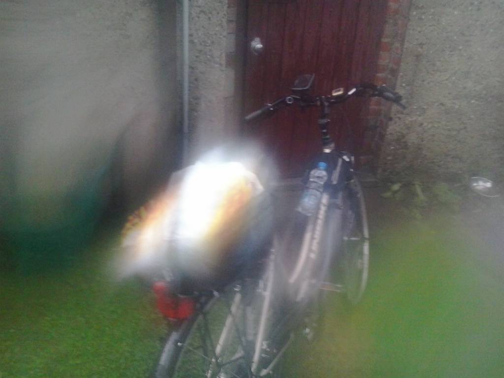 woda płyneła całą drogą deszcz ze wszystkich stron no i zaliczyłem glebe przednie koło wpadło w dziure w drodze którą była pod wodą naszczęscie nic się nie stało rower cały