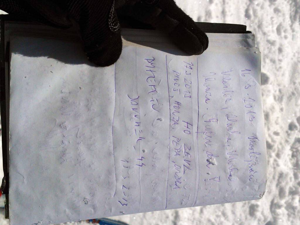 Na szlakowskazie na Podbelce znajduję metalową skrzyneczkę. Wewnątrz jest zostawiony zeszyt pamiątkowy i długopis, wpisuję się, przecież tu byłem. Zeszyt trafi do archiwum. Fajna rzecz i nikt tego nie niszczy, bo zapisów wynika, że funkcjonuje od lata ubiegłego roku.