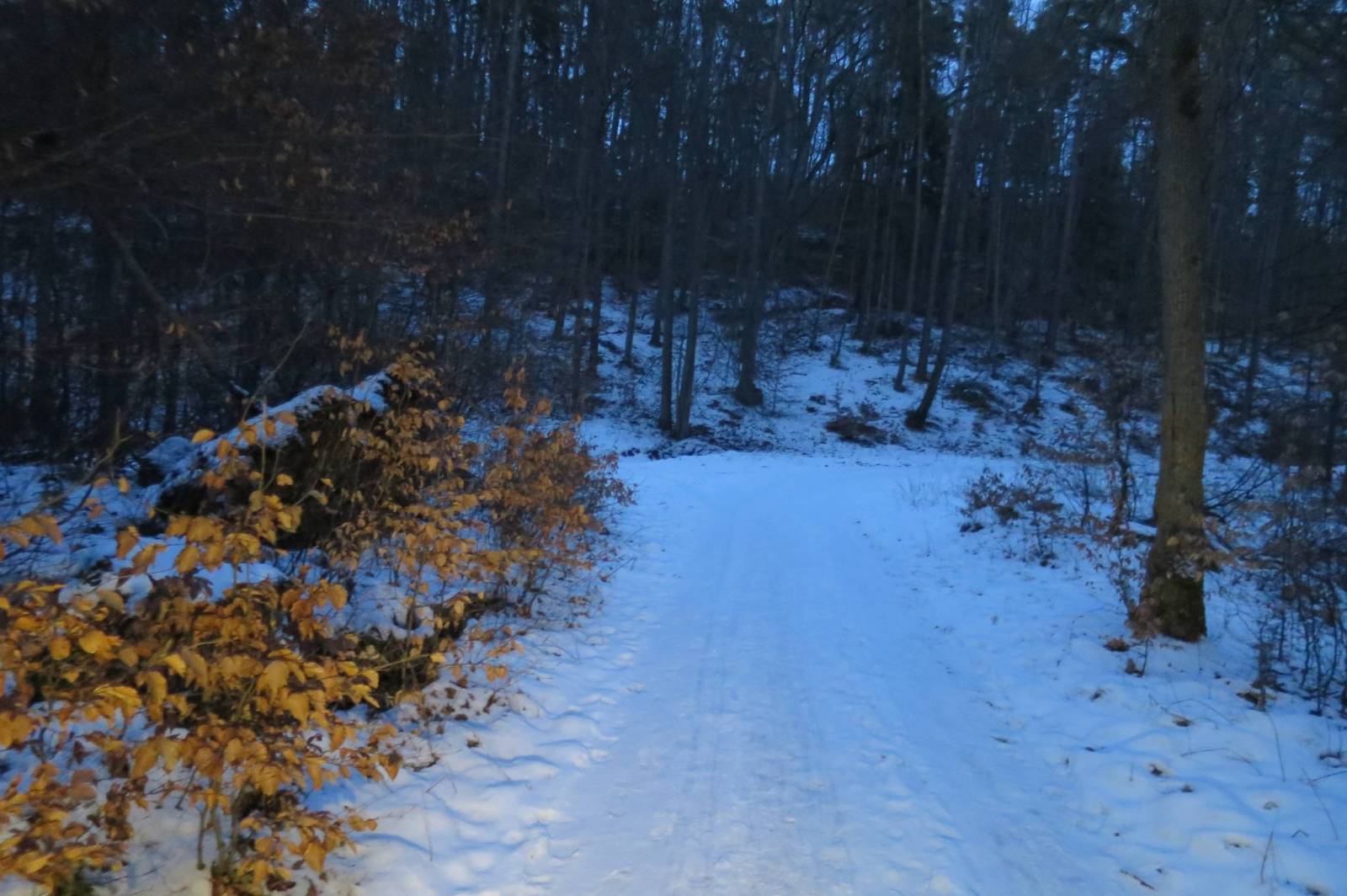 Krótka pętelka po pracy, trochę po lesie, trochę po asfalcie. W lesie zrobiło się ślisko jak diabli no i zaliczyłem ślizg na krzaczory ;)