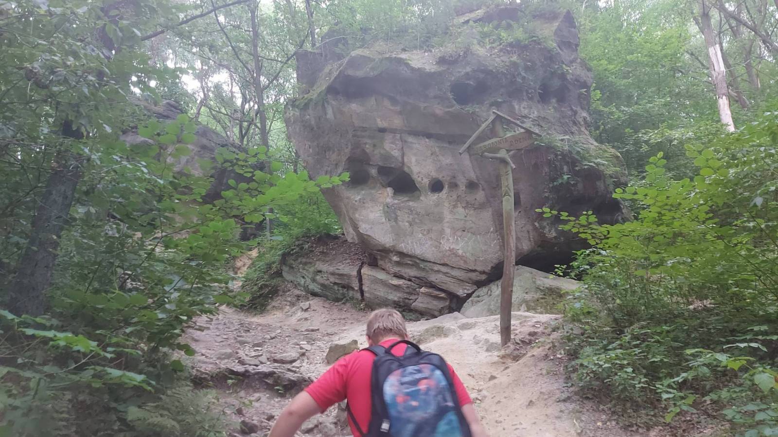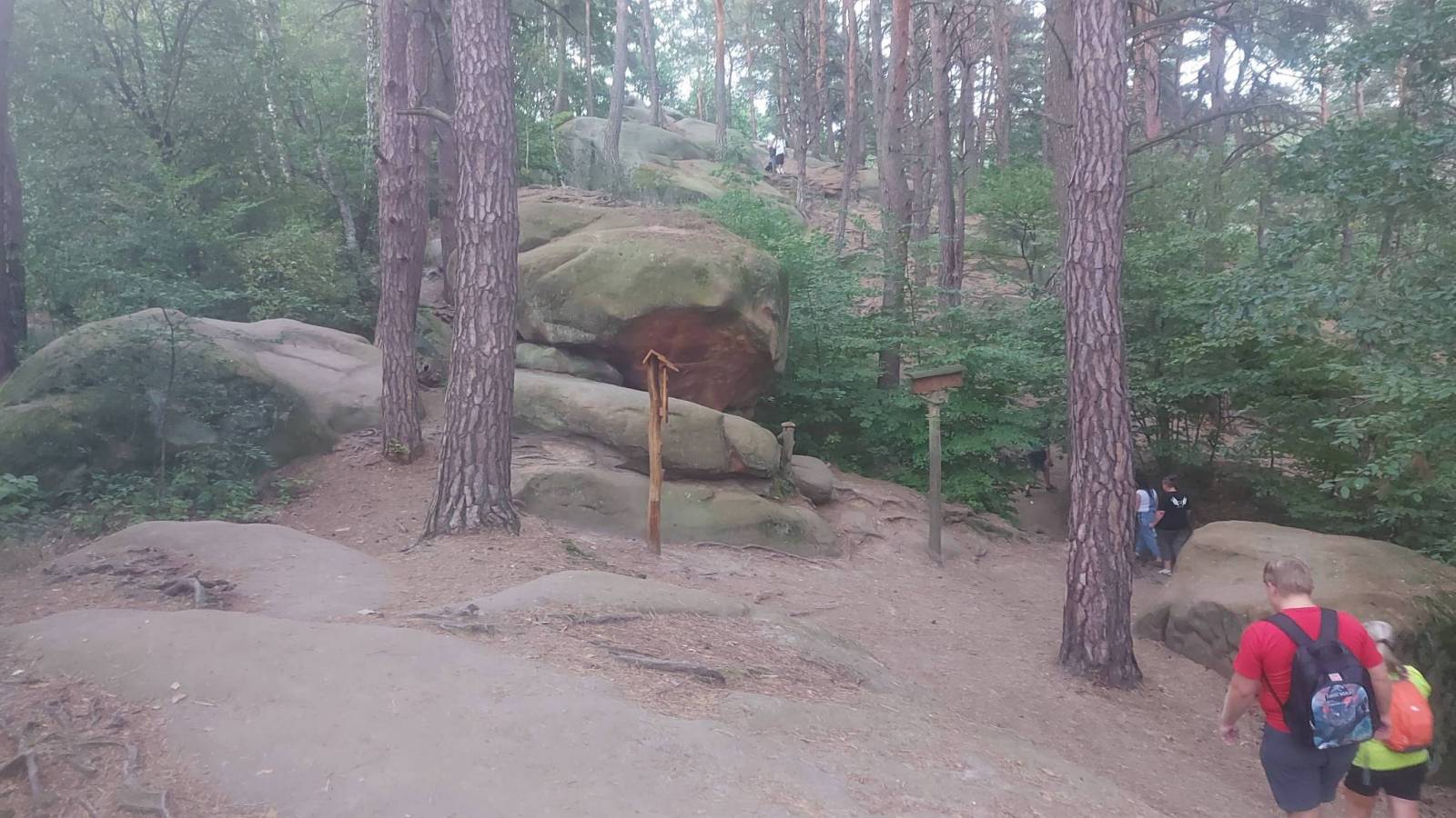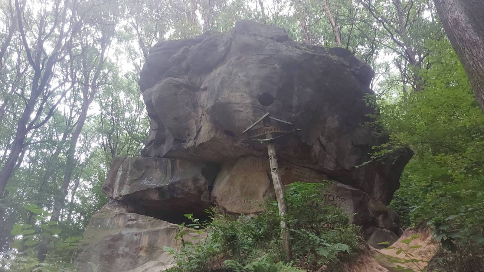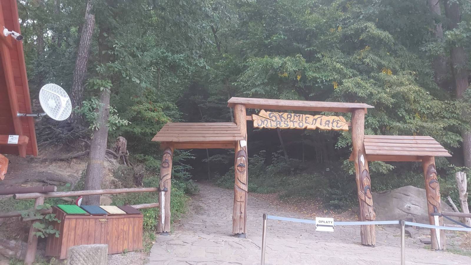 Korzystając z okazji że byliśmy w pobliżu na wycieczce rowerowej postanowiliśmy obejrzeć atrakcję pogórze Rożnowsko- Ciężkowickiego czyli Skamieniałe Miasto. Miejsce jest bardzo popularne co mogliśmy zaobserwować na parkingu który o godzinie 17:00 był jeszcze całkiem pełny.. Za bilet trzeba zapłacić 5 zł, za parking 10 zł i opcjonalnie za przewodnik 9 zł. Trasa zajęła nam 2 godziny a pokonaliśmy około 5 km. Po drodze kilka ciekawych skał zbudowanych z piaskowca ciężkowickiego które ,na skutek działalności lodowca a następnie erozji i trochę przy pomocy człowieka który jeszcze w XX wieku wydobywał skały z kamieniołomu , przybierają bardzo fantazyjne formy. Najbardziej znana jest "Czarownica z charakterystycznym nosem oraz "Grunwald" i "Skałka z Krzyżem". Po przejściu "Miasta" poszliśmy jeszcze obejrzeć Wąwóz Czarownicy oraz znajdujący się tam wodospad. Pomimo że wodospad niestety zniknął, z powodu zbyt małej ilości wody ,to i tak byliśmy bardzo zauroczeni miejscem z kilkunastometrowymi pionowymi ścianami skalnymi po obu stronach wąwozu. Wracaliśmy tzw. szlakiem Nietoperza prowadzącym trochę naokoło raczej bez atrakcji i czasami dość stromo w dół po gliniastej ścieżce która po deszczu musi być bardzo śliska.