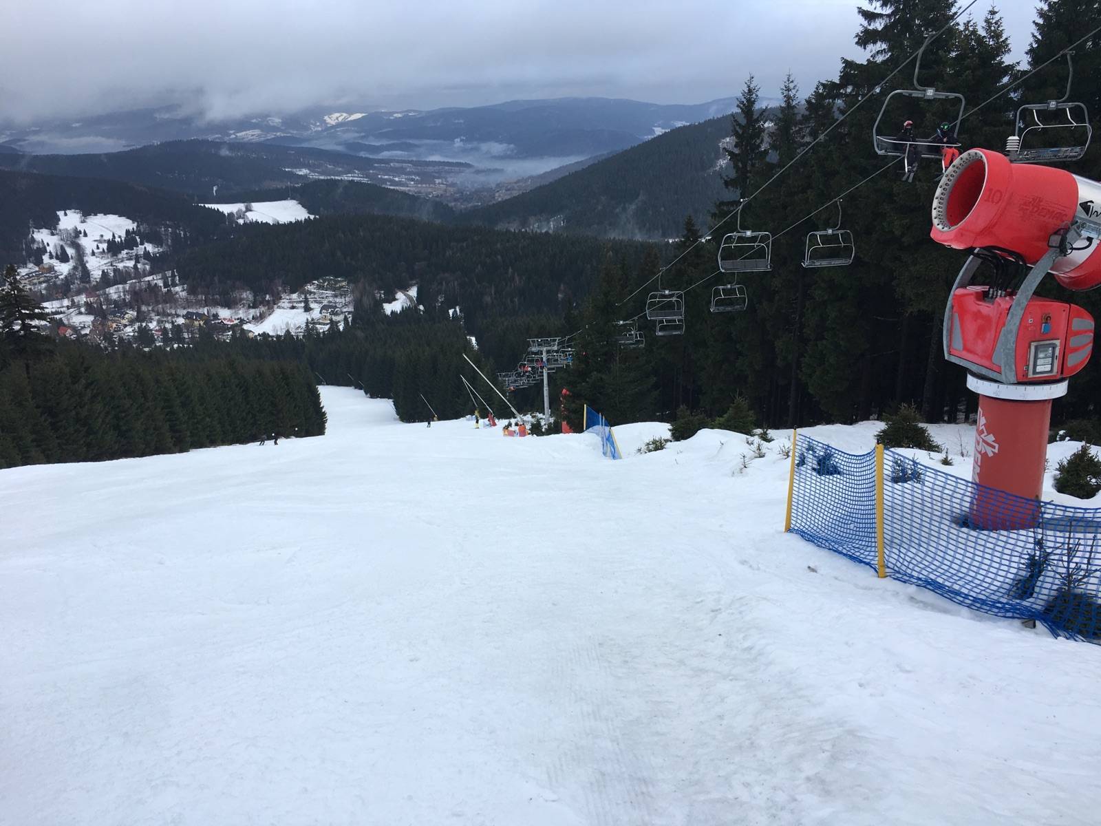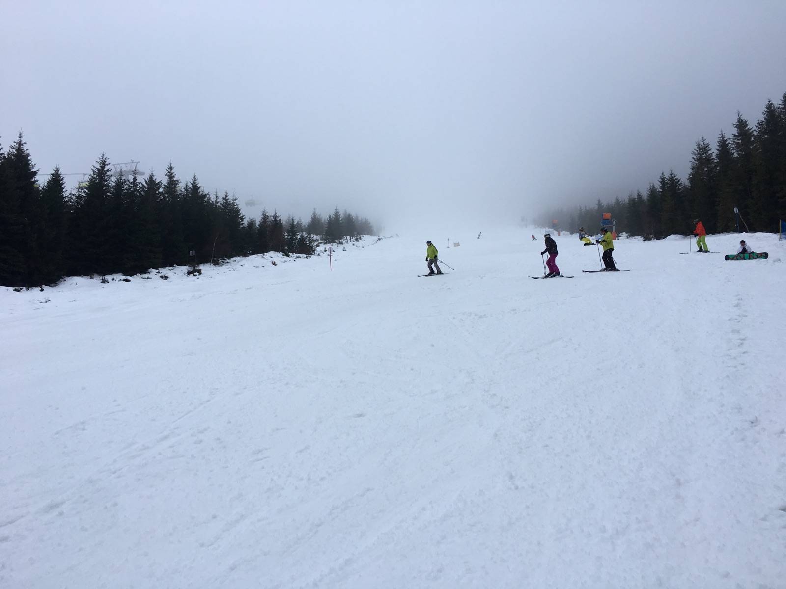 Wyjazd na narty do ośrodka Czarna Góra. Rano pomimo bardziej optymistycznych prognoz lało przy temperaturze 2 stopnie. Na szczęście około 9:30 deszcz ustał i mogliśmy jako tako pojeździć. Pogoda jednak dalej niezbyt zimowa przez co bardzo szybko potworzyły się w grząskim mokrym śniegu i przy sporym ruchu ogromne muldy. Najgorzej było na B bo tam też jest najwięcej narciarzy. Na A i C dobre warunki utrzymały się znacznie dłużej. Fajnie też było na wariancie B i łącznikach pomimo tego że oficjalnie są pozamykane. Generalnie w takich warunkach ośrodek przygotowany naprawdę przyzwoicie. Mam nadzieję że szybko wróci zima co znacznie poprawi komfort jazdy.