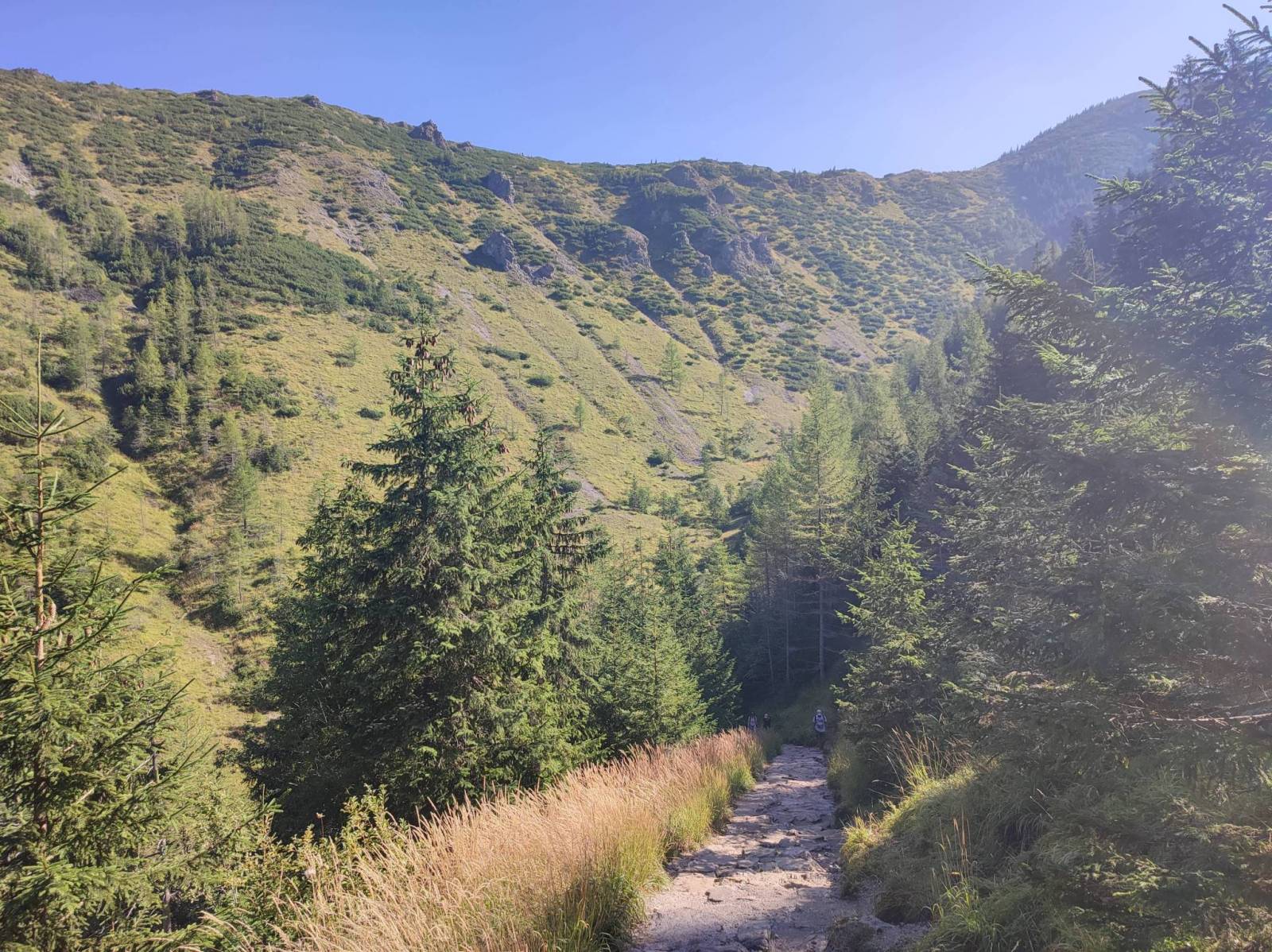 Trasę zaczynam w Kuźnicach, do których dostaję się busem z rejonu dworców. W kierunku Przełęczy Między Kopami idę szlakiem żółtym przez Dolinę Jaworzynki. Od przełęczy na Czarny Staw Gąsienicowy prowadzą oznaczenia niebieskie. Dochodząc do Hali Gąsienicowej naszym oczom ukazuje się cała Orla Preć. Po drodze wchodzę do Schroniska Murowaniec na małe piwo, z którego rezygnuje ze względu na olbrzymią ilość ludzi. Nad Czarnym Stawem również trudno było znaleźć kamień aby usiąść. Nie zabawiłem w tym tłumie zbyt dużo czasu i do Kuźnic wróciłem tym razem przez Boczań. Trasa jest ładna, i nie wymagająca, jednak w weekendy i przy ładnej pogodzie okrutnie zatłoczona.