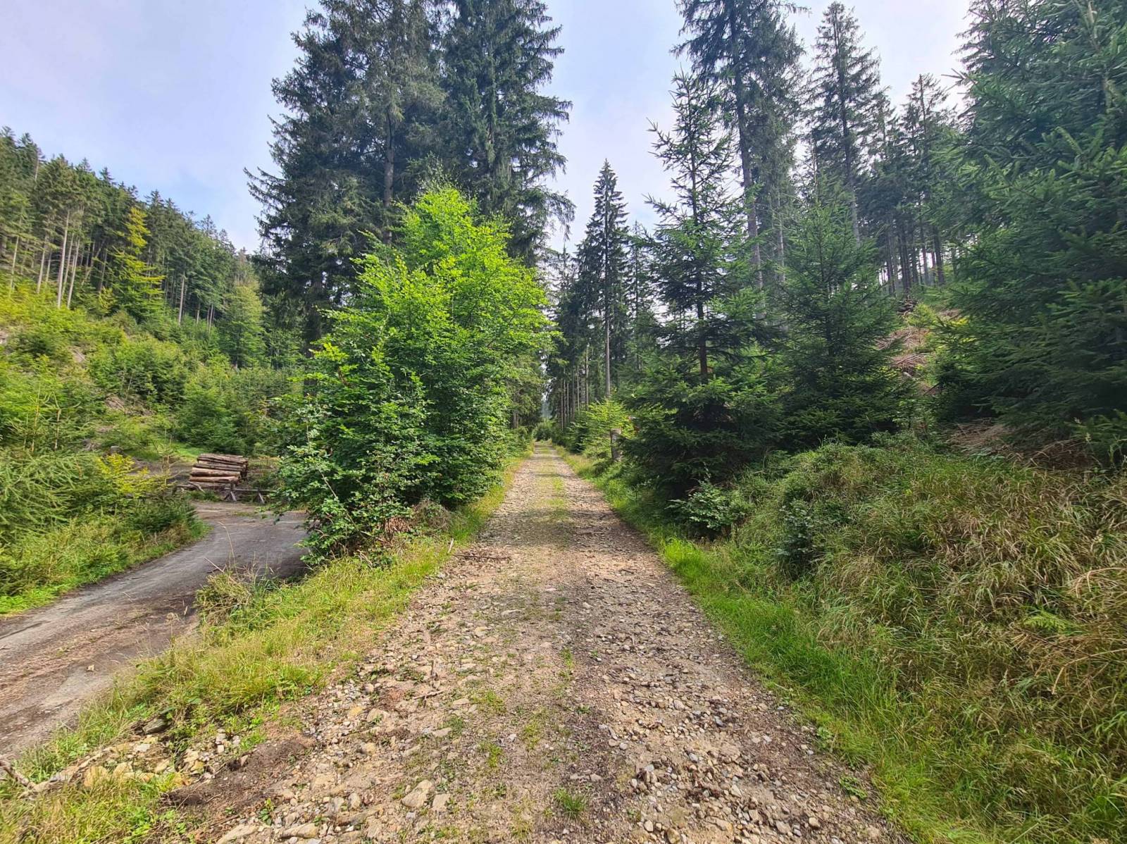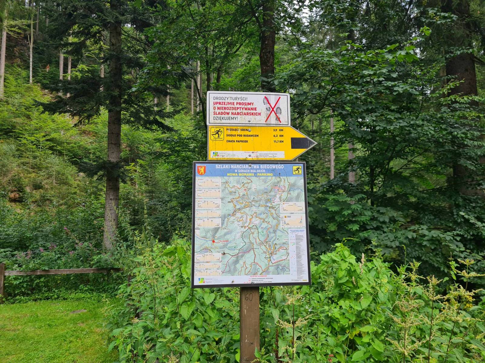 Asfaltową droga ze Stronia Śląskiego do Nowej Morawy , potem kamienisto szutrowa trasa na przełęcz Suchą . W tej części gór bialskich sporo asfaltowych wąskich dróg . Jadę z w kierunku granicy . Na wysokości ok 1000 m npm łapie mnie deszcz . Szybki zjazd do Bielic , przebieranie w wiacie i deszczowa trasa do Stronia Śląskiego.