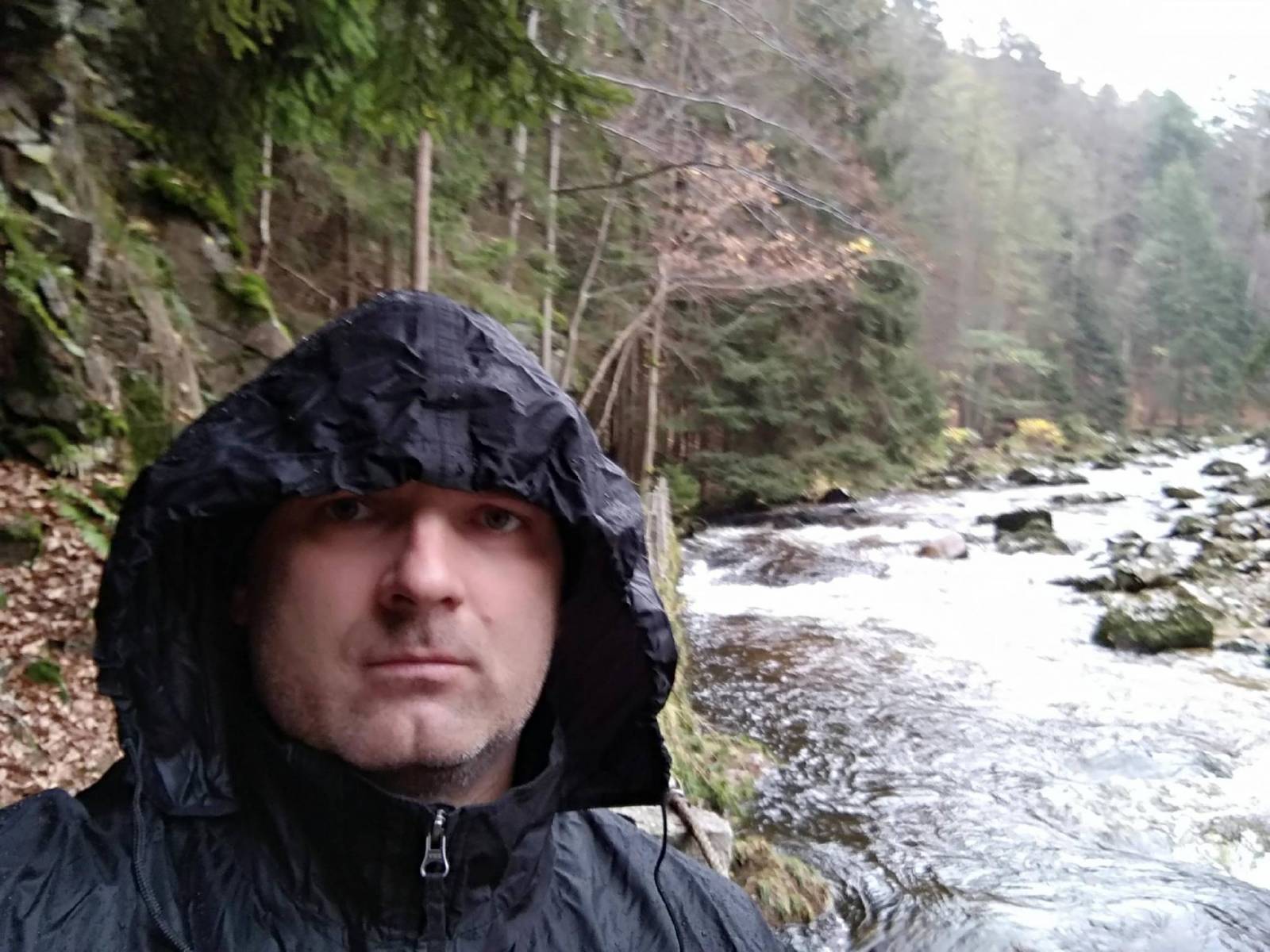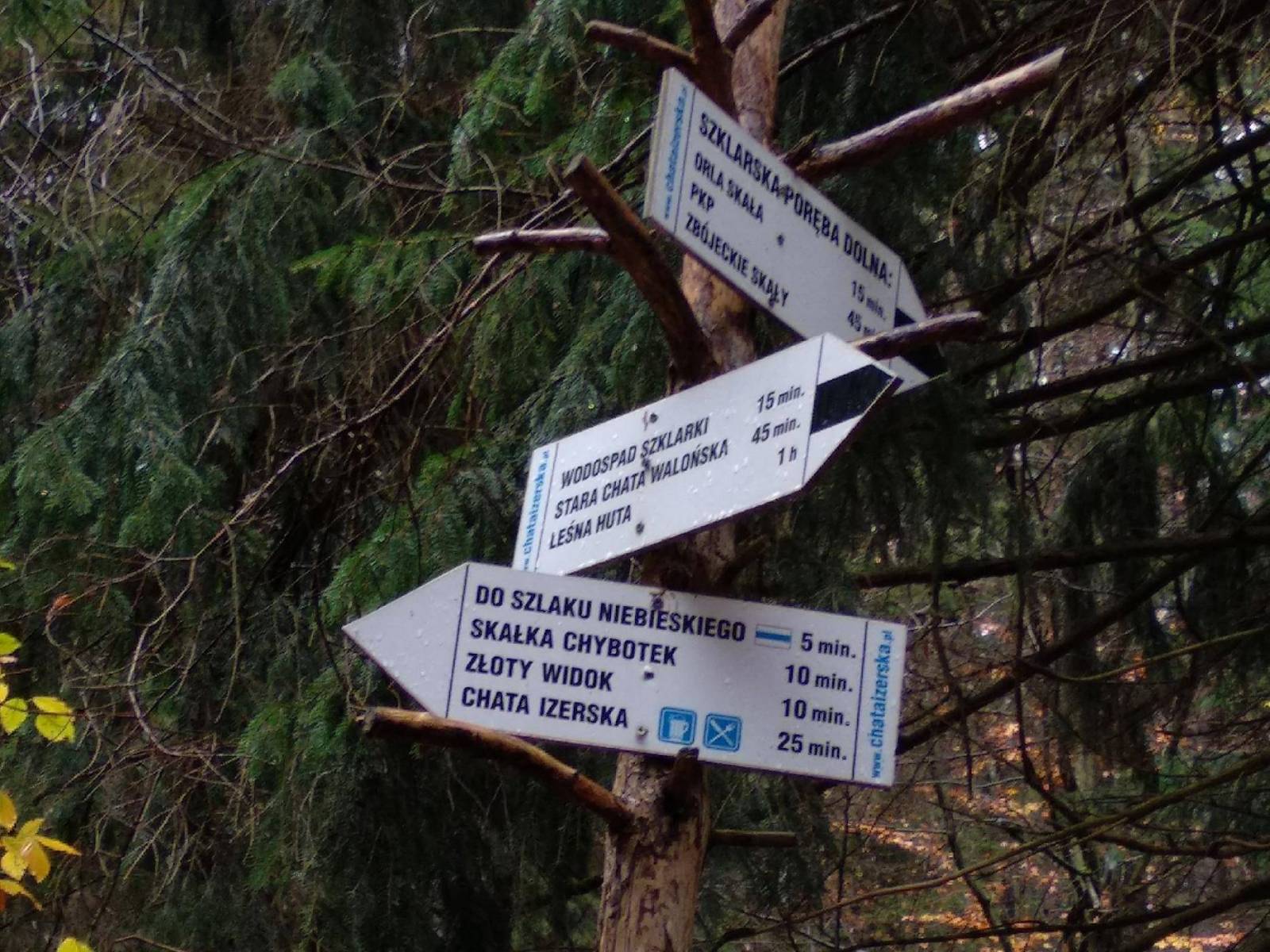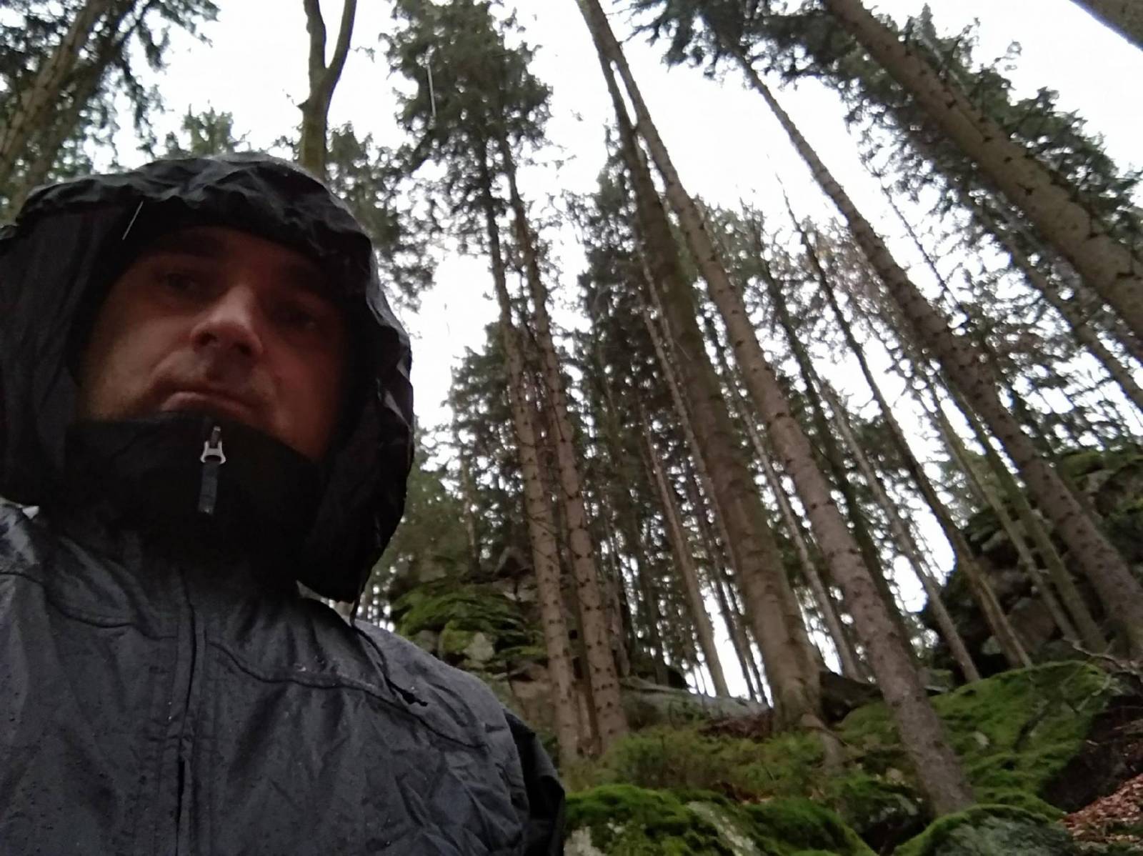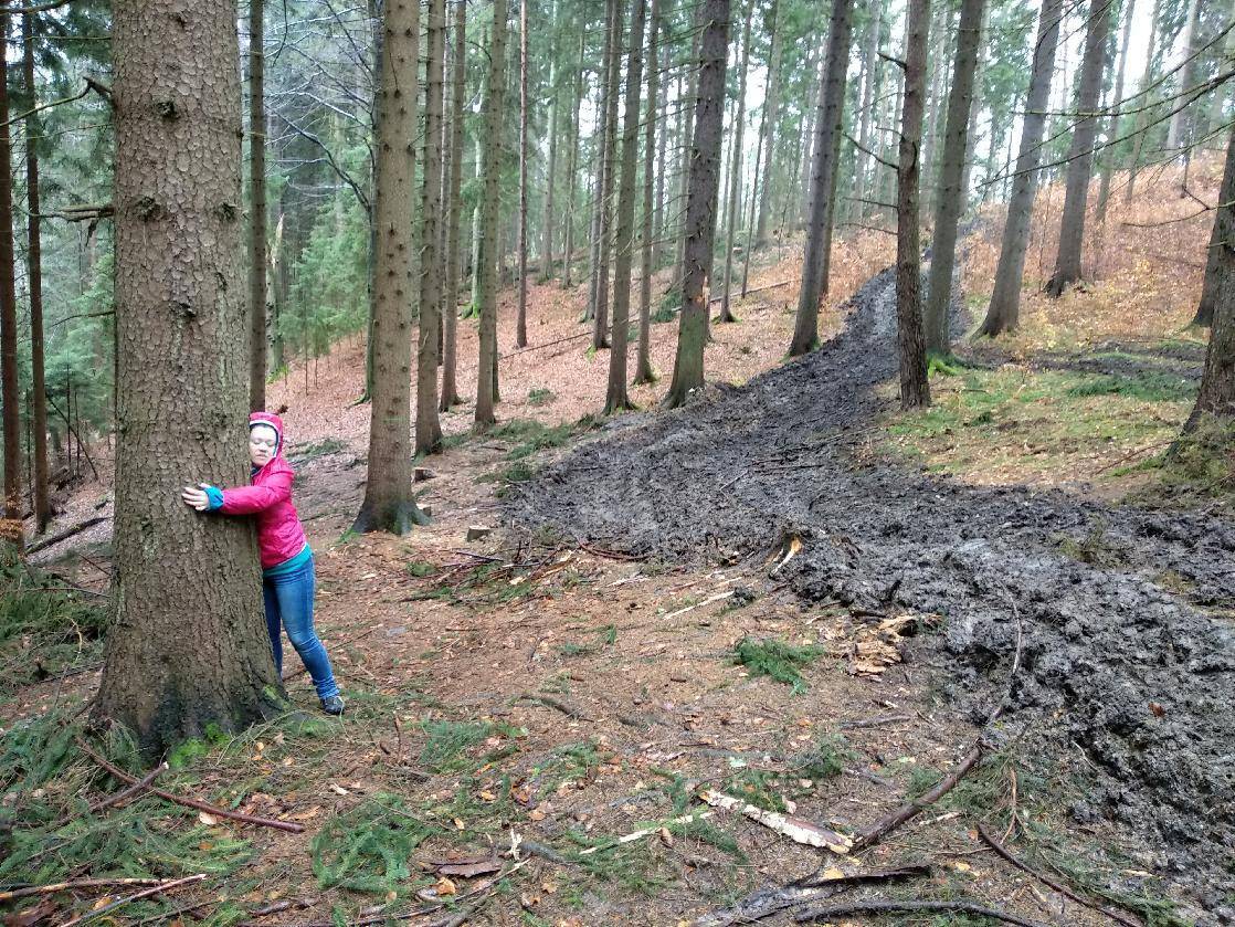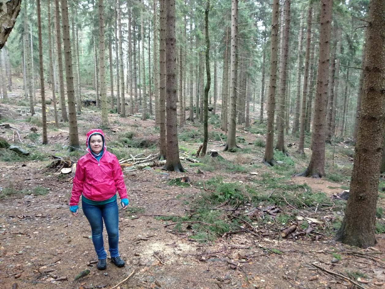 Zaplanowałem krótką trasę do Chybotka i Złotego Widoku. Po długim oczekiwaniu na poprawę pogody wyruszyliśmy w deszcz. Niestety nie było nam dane dzisiejszego dnia zrealizować założonego celu. Mimo niepogody szlak był zamknięty z powodu trwających prac leśnych. Odgłos pił uświadomił nam, że powinniśmy zawrócić. Ale cóż - następnym razem może się uda.