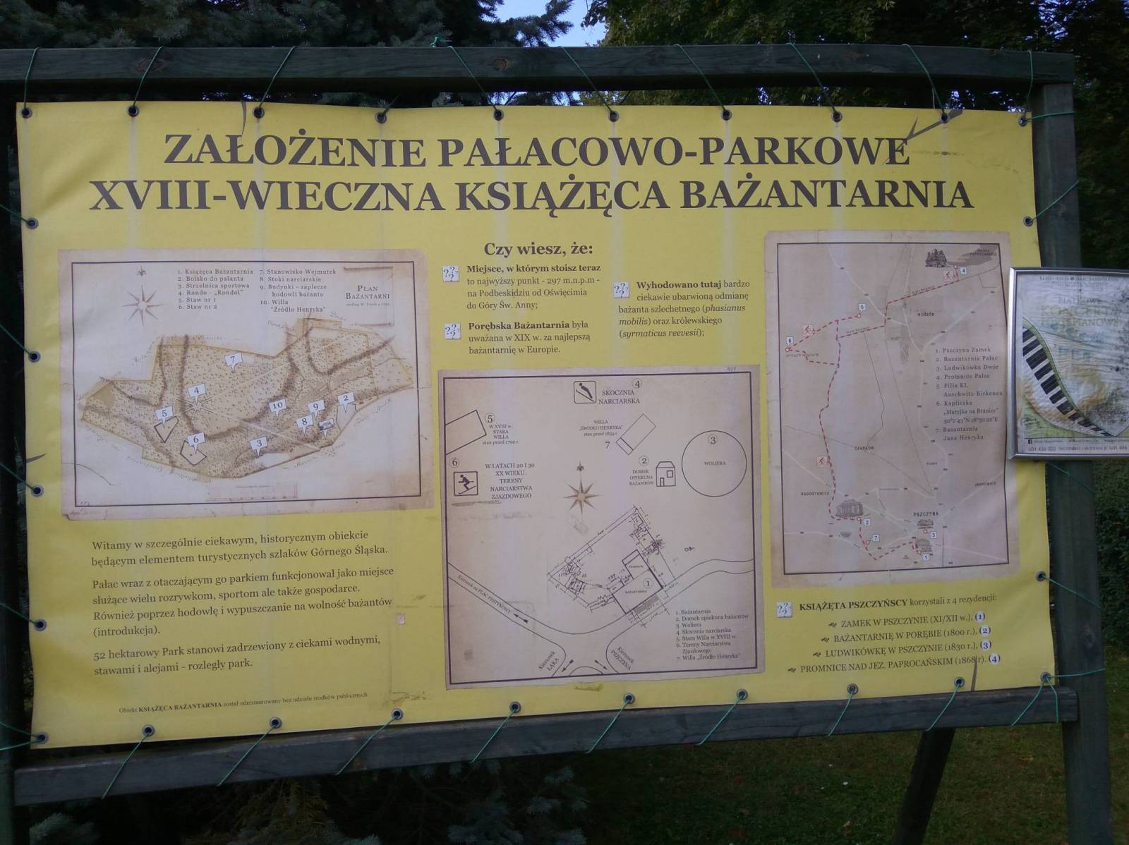 Mapa Pszczyny, Tych i okolic ograniczony jest przez Oświęcim na wschodzie i Żory na zachodzie, południowa część mapy to Jezioro Goczałkowickie. Na mapie zaznaczono informacje przydatne turyście i podano przebiegi szlaków pieszych i rowerowych. Wyróżniono miejscowości godne zwiedzania i miejsca szczególnie interesujące aktywnych.
