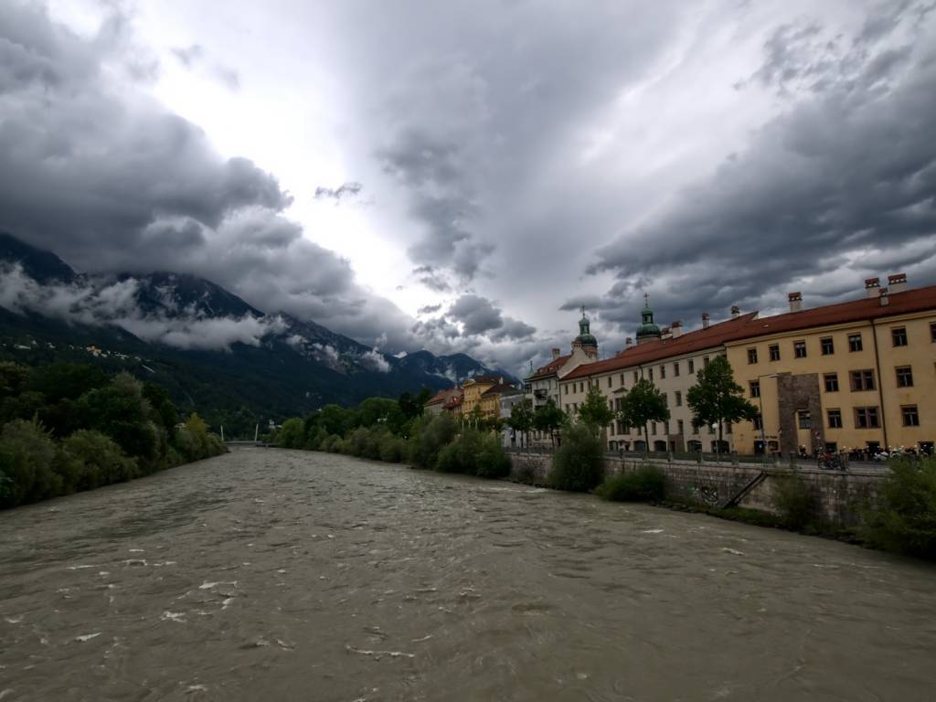 Zjazd z przełęczy (1700m npm) w deszczu wzdłuż doliny Stubaital. Po drodze do Insbrucka zjazd serpentynami i przejazd pod wiaduktem autostradowym z którego odbywają się skoki na bungie. Przejazd przez wiele malowniczych wiosek alpejskich. Na okolicznych wzniesieniach wiele wodospadów wpadających do rzeki płynącej przez dolinę. Na koniec skocznia i zwiedzanie samego Insbrucka.