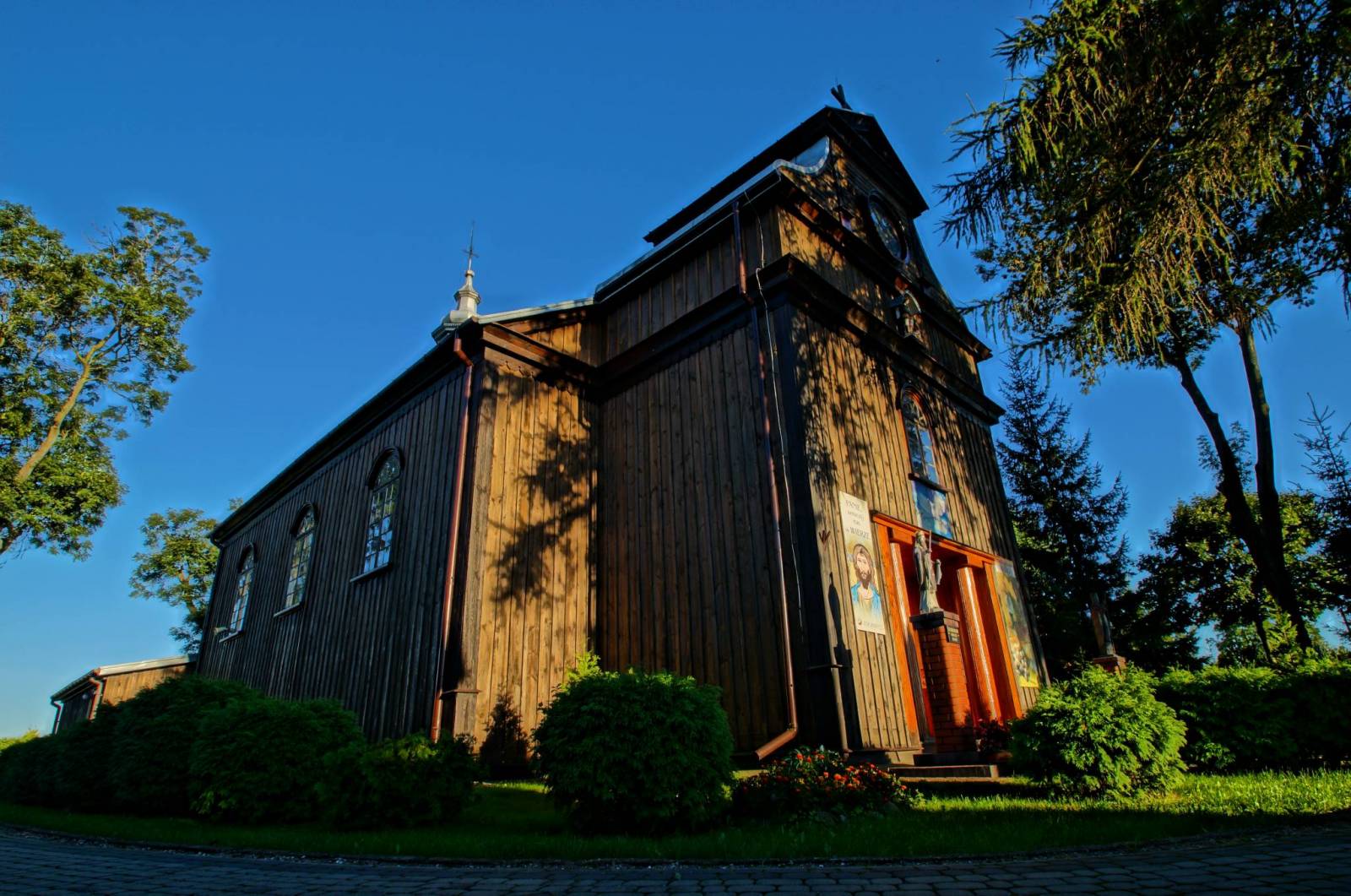 Wycieczkę łącząco Ciechanów z Modlinem rozpoczynamy w nietypowym miejscu. Nie jest to bowiem obiekt drewniany a nietypowa wieża ciśnień, która obecnie pełni funkcję muzealną. Drugiej takiej nie spotkacie nie tylko na Mazowszu, ale nigdzie na terenie Polski! Warto poświęcić na nią kilka chwil, poszukać dobrych kadrów – ciekawe zdjęcia murowane :) Będąc w Ciechanowie można poświęcić także trochę czasu na inne nie-drewniane obiekty – zamek gotycki (niestety z nowoczesnymi dobudówkami na dziedzińcu), klasycystyczny ratusz czy też kościoły. Nas jednak interesować będzie znajdujący się nieopodal niewielki kościółek w Przedwojewie. Położony jest tuż przy ruchliwej drodze wojewódzkiej, dlatego żadna z proponowanych przez nas tras rowerowych go nie obejmuje, jednakże jest naprawdę godny odwiedzenia. Więcej informacji o obiekcie: http://www.drewnianemazowsze.pl/przedwojewo-kosciol/