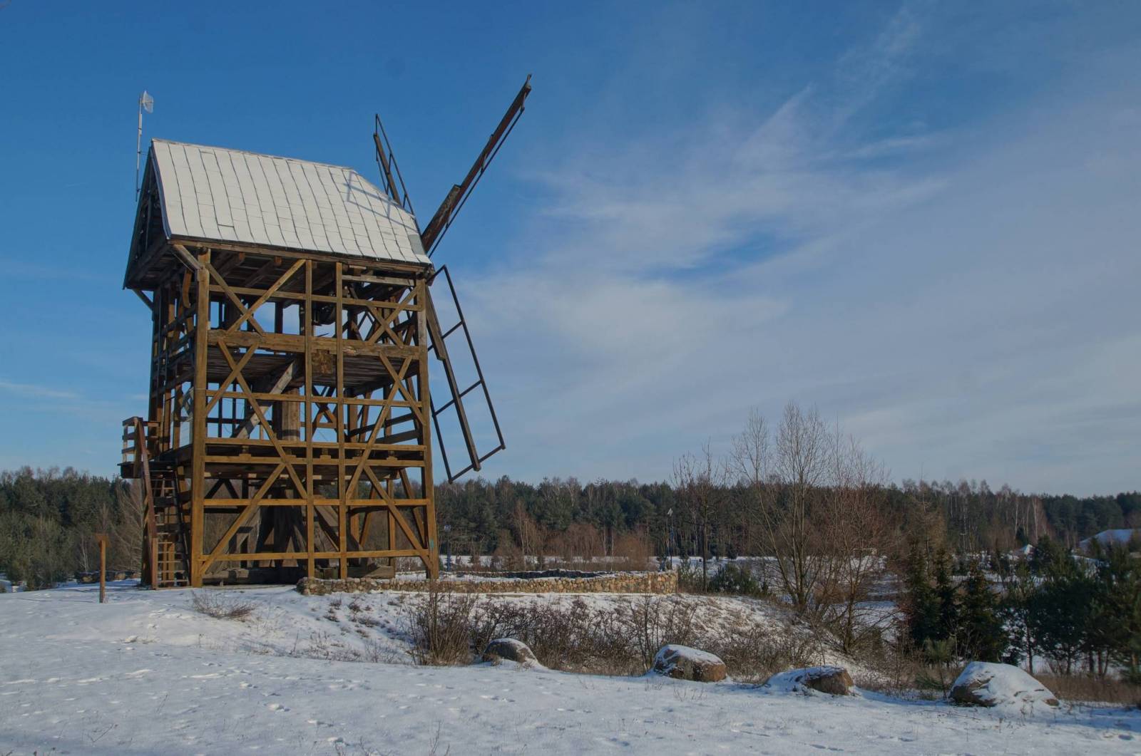 W samym Gąsiorowie można też przenocować w agroturystyce w dawnym siedlisku młyńskim: https://mlyn-gasiorowo.pl/. Podobnie jak w kolejnej miejscowości na naszym szlaku. Właściciel hotelu Nosselia w Krzyczkach-Poniatach na swoim terenie relokował drewniany wiatrak koźlak. Nieoszalowano go, dzięki czemu z zewnątrz można zobaczyć całą konstrukcję. Wiatrak ma śmigła i podobno organizowane są z niego... zjazdy tyrolką.