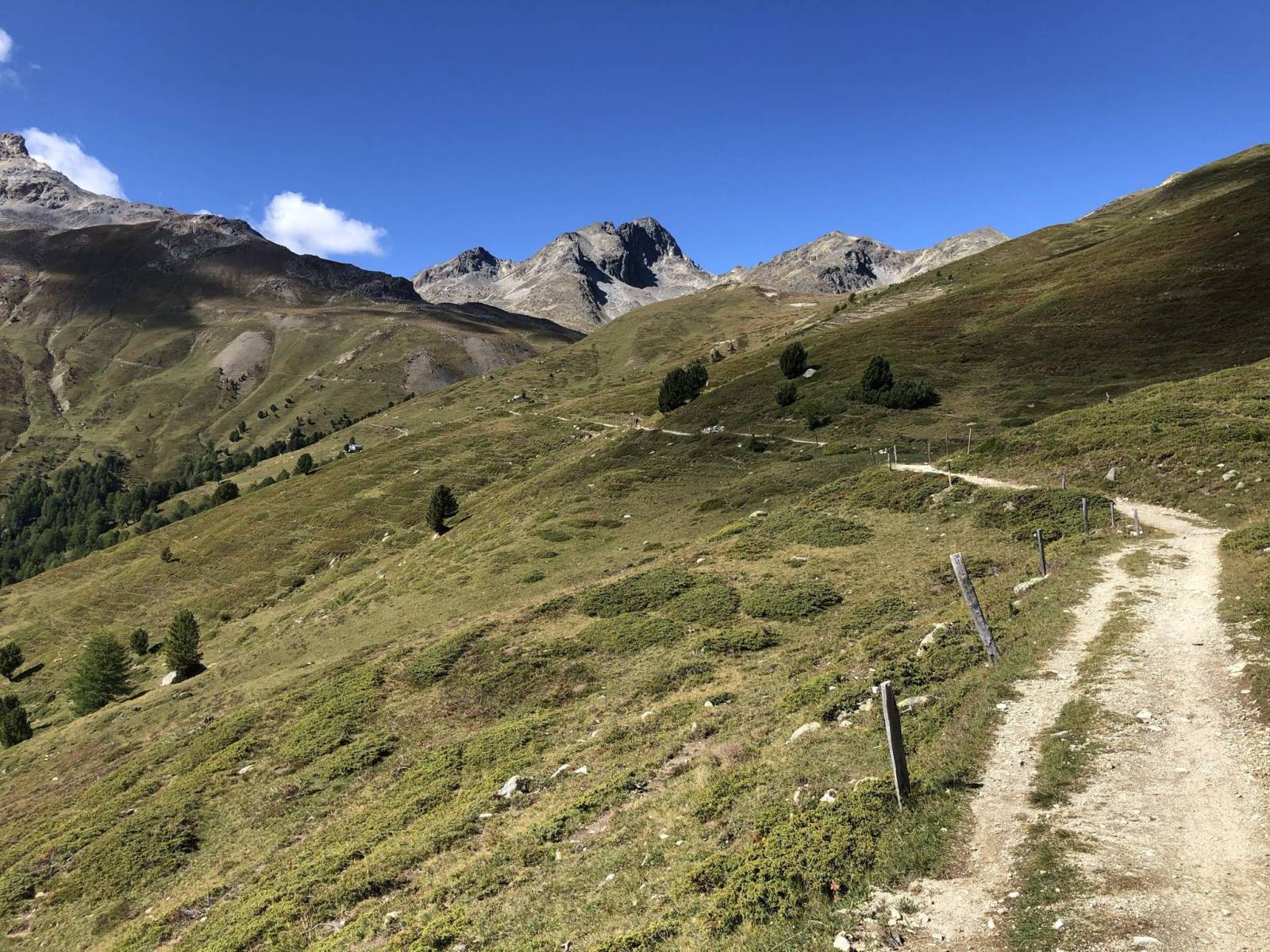 Duży szlak panoramiczny zaczyna się poniżej szczytów górskich Piz Padella i Trais Fluors i prowadzi do Marguns.