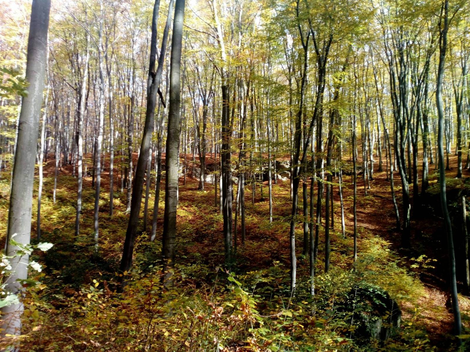 To była prawdziwie górska wycieczka, najpierw przez leśne bezdroża, żeby sobie pobiegali trochę (no, prawie bezdroża, bo jakieś ślady ścieżki tu i ówdzie było widać), a potem dopiero przeszliśmy na drugą stronę i kawałek wzdłuż tytułowego potoku, ale tam było już mnóstwo ludzi.