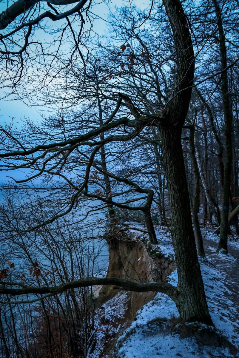 Wycieczka piesza z Gdyni do Gdańska. Trasa prowadzi przez klify w Gdyni Orłowie. Po drodze teoretycznie miał być piękny wschód słońca, ale chmury go dziś skutecznie zasłoniły. Pozostaje spacer w blasku niebieskiego światła i mała rozgrzewka z rana.
