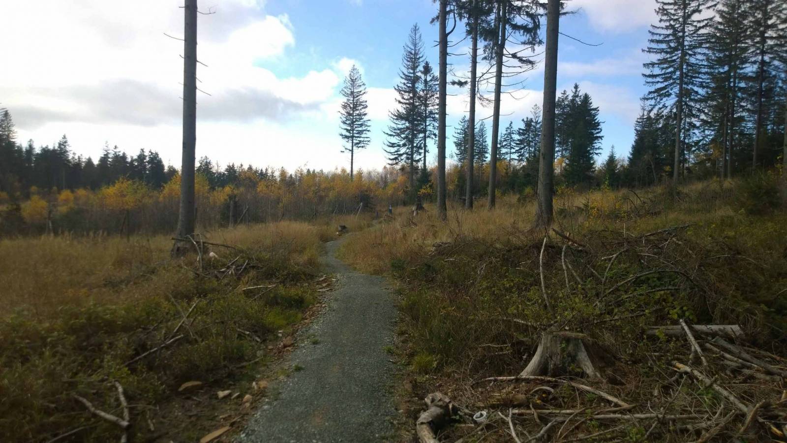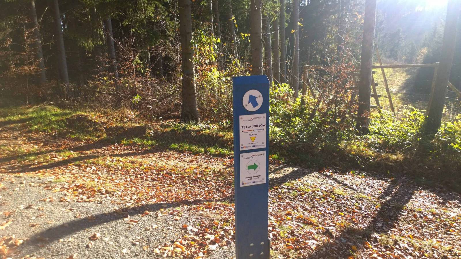 Zapowiadał się ładny chociaż chłodny dzień , szkoda tego nie wykorzystać . Z singli w okolicy został mi singiel w Międzylesiu . Auto zostawiam na sporym parkingu przy stacji PKP w Międzylesiu , Nie ma problemu z pozostawieniem samochodu . Dojazd do bramki singla jest z tego miejsca nie nastręcza trudności , ale fragment po zjeździe z głównej drogi jest błotnisty . Po pętli jedzie się przyjemnie , czasami trzeba szukać trasy wśród opadłych liści . Trasa jest dość dość krótka , zjeżdżam więc do Międzylesia i przez Dolnik i Pisary dojeżdżam do pętli Jodłów , Dziś tu pusto . Po singlu Jodlów dojeżdżam do tabliczki , która kieruje mnie do Międzylesia . Gdybym tędy przyjechał zaliczyłbym całą pętle Jodłów , ale na tym akurat mi nie zależało zrobiłem to poprzednim razem .