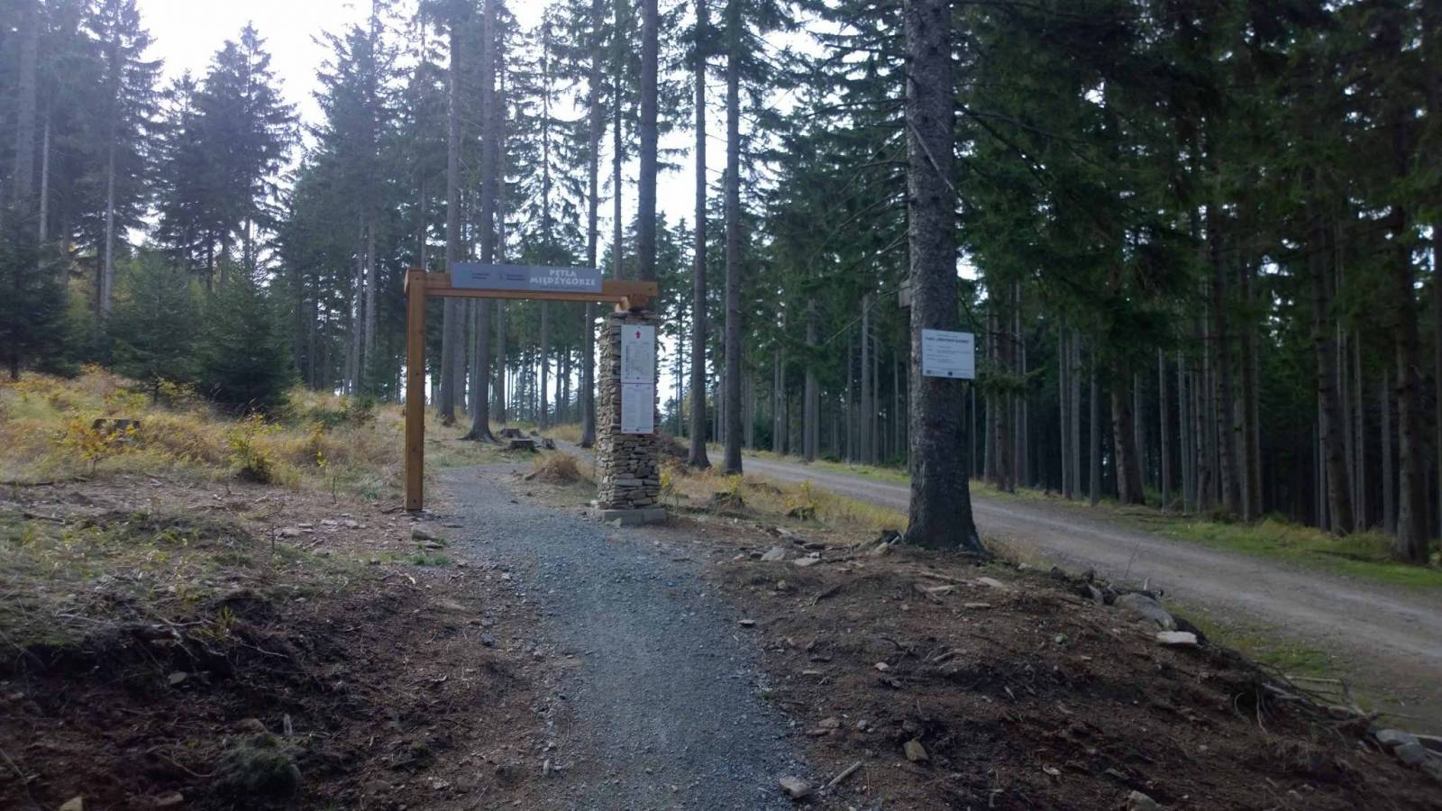 Dziś ruszam na pętle w najbliższej okolicy . Dojeżdżam do pętli Rudka. Okazuje się ,że pomimo piątku na trasie są rowerzyści . Robię całą pętlę , pogoda dopisuje . Postanawiam przejechać jeszcze kolejną pętle Stronie Śląskie . Zjazd na tą pętle znajduje się mniej więcej w połowie pętli Rudka / widać na zdjęciach / Do tego zjazdu dojeżdżam częściowo asfaltem , leśnymi drogami a potem znowu fragmentem pętli Rudka . Tutaj na trasie pustki . Pod osiągnięciu bramki Międzygórze , ze zdziwieniem stwierdzam ,że zmieniono przebieg tej pętli w tym miejscu . Nie schodzi ona w stronę przełęczy Puchaczówka ale w stronę Idzikowa i koło leśnej kaplicy w stronę Marcinkowa . Wszystko to wyszło tej pętli na dobre .