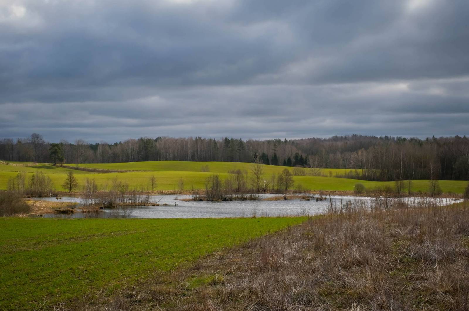 Wycieczka piesza do Rezerwatu Las Ostrzycki. Początek i zakończenie wędrówki w Gołubiu. Trasa robi pętle. Po drodze Jezioro Zamkowisko, Jeziorem Buk, Jezioro Kamionka, Jezioro Ostrzyckie, Jezioro Patulskie. Na polach sporo rozlewisk. Dziś udało się spotkać sarny, czaple i żurawie. W końcu wyszło słońce. Polecam tą wycieczkę.