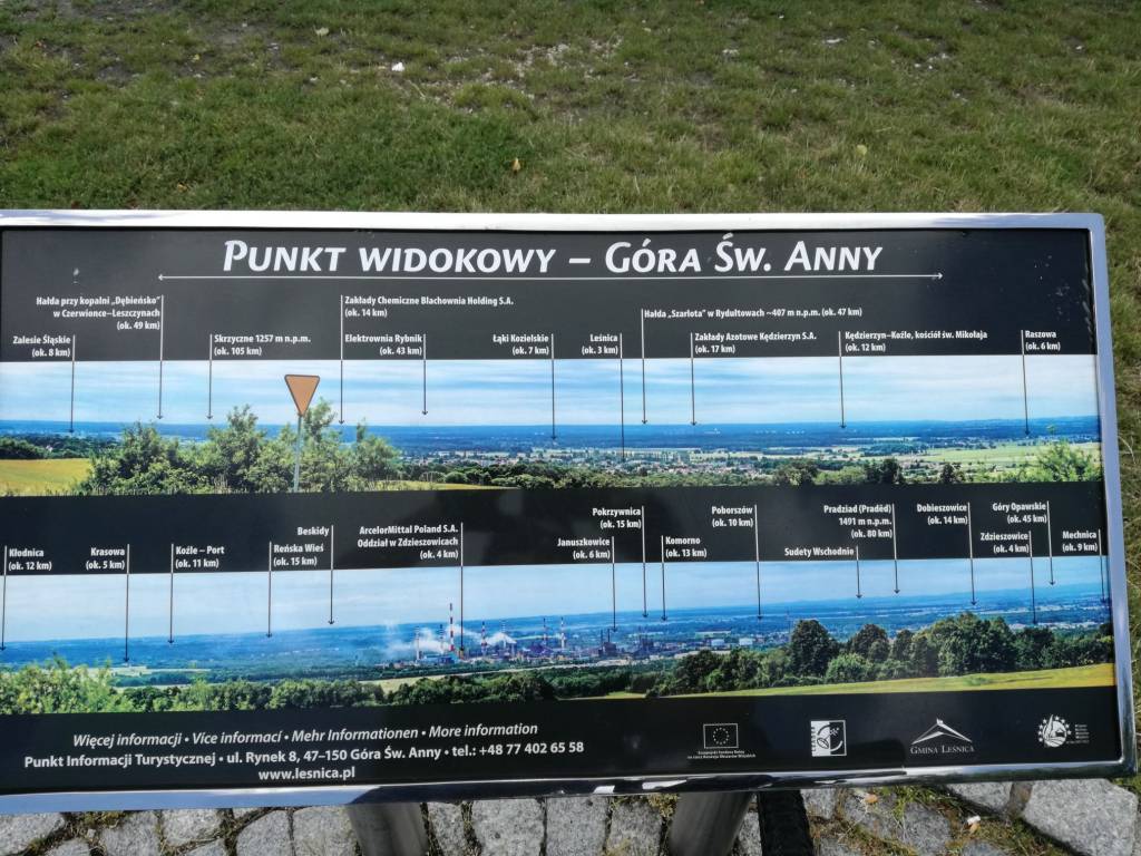 Ruszamy z parkingu koło stadionu. Jedziemy asfaltem po prawej stronie mamy stadion. Droga BARACHOWSKA wprowadza nas w odrodzony las po tragicznym pożarze z 1992 roku. Cały czas podążamy przed siebie. Na skrzyżowaniu z Obrębową skręcamy w lewo. Asfalt zamieniamy na ubite kamienie. Patrzymy na boki zawsze można spotkać jakiś leśnych mieszkańców. Docieramy do Dziergowickiej. Skręcamy w prawo i od zaraz w lewo. Mijamy kolejne skrzyżowania. Na krzyżówce z Od Mostka Raciborskiego skręcamy w prawo. Jedziemy w stronę kopalni piasku. Omijamy budynek wjazdowy na kopalnię z prawej strony leśną ścieżką. Skręcamy w lewo. Mijamy po prawej stronie Parowozy. Cały czas przed siebie. Docieramy do drogi 408. Udajemy się w lewo. W Kotlarni z głównej skręcamy w prawo. Jedziemy koło Kościoła, w prawo, w stronę Starej Kuźni. Widać w oddali “Latarnie leśną” Nadleśnictwa. Droga cały czas prosto. Przez miejscowość prowadzi nas ulica Brzozowa. Wjeżdżamy pod górę gdzie można skręcić w prawo aby z bliska zobaczyć Nadleśnictwo. Asfalt kolejny raz i nie ostatni podczas tej podróży prowadzi nas prosto. Przejeżdżamy dwa przejazdy kolejowe. Po prawej stronie mijamy Obóz Koncentracyjny. (Znak ułatwia wjazd do tego miejsca). Docieramy do skrzyżowania z drogą nr 40. Skręcamy w prawo. Jedziemy po łuku w lewo. Mijamy most nad kanałem Gliwickim. Droga 40 prowadzi w prawo my jedziemy prosto w 426. Pedałujemy wśród pól. A przed nami widać cel naszej wycieczki. Na rondzie skręcamy w lewo. (Znaki już ułatwiają orientację. Zarówno dla samochodów jak i rowerzystów) Mijamy Zalesie Śląskie, Lichynie. Docieramy do Leśnicy. Mijamy rynek. Jedziemy w dół i w prawo. Znak nasz pokieruje. Zaczyna się wspinaczka na Górę Św. Anny. Trudy wspinaczki rekompensują widoki jakie nas otaczają. (większość kolarzy zjeżdżający z góry uśmiecha się. Była to dla nas zagadka dlaczego. Z biegiem czasu odkryliśmy tą tajemnicę :) ) Przejeżdżamy obok Muzeum Czynu Powstańczego. Docieramy do punktu widokowego. Chwila przerwy aby nacieszyć oczy widokami. Dalej w drogę. Do celu jeszcze kawałek wspinaczki. Jest i cel wspinaczki. Wracamy w dół i na skrzyżowaniu skręcamy w prawo w Leśnicką i w lewo pod zakaz w dół. Docieramy do punktów widokowych nad Geoparkiem. Nadal jedziemy drogą w dół i na skrzyżowaniu skręcamy w lewo w stronę Pomnika. Po lewej stronie prowadzi ścieżka. Odważniejsi mogą spróbować zjechać w dół. Na dole skręcamy w prawo i docieramy do amfiteatru, który robi wrażenie swoja wielkością. Wracamy tą samą droga co przyjechaliśmy. (Mijamy skrzyżowanie na którym skręcaliśmy w prawo.) Jedziemy pod górę. Znajdujemy się przy punkcie widokowym. Teraz przyjemniejsza część wycieczki i rozwiązanie zagadki zadowolonych kolarzy jadących w dół. Trasa bardzo przyjemna i szybka, momentami bardzo szybka w dół. Bez problemu można dotrzeć do rynku w Leśnicy bez pedałowania. Na rynku skręcamy w pierwszą w prawo. Szlak czarny wyprowadza nas z miejscowości. Mijamy Raszową. Droga prowadzi wśród drzew co daje przyjemny cień i osłonę przed wiatrem. Na skrzyżowaniu z drogą 423 skręcamy w lewo. Na światłach w lewo. Dojeżdżamy do ronda. Zjeżdżamy na drugim wyjeździe. Przed kolejnym rondem skręcamy w prawo. Droga asfaltowa zmienia się w szutrową. Mocny skręt w prawo na płyty betonowe. Jesteśmy koło oczyszczalni. Skręcamy w prawo. Teraz spokojnie przed siebie wśród drzew, łąk i pól. Wjeżdżamy do miejscowości Brzeźce. Na krzyżówce skręcamy w prawo. Jedno skrzyżowanie pokonujemy prosto. Na kolejnym (oznaczenia ścieżki rowerowej ułatwiają orientację) skręcamy w prawo. Następnie w lewo i znowu przed siebie. Przejeżdżamy przez most (zaraz obok mostu woda “znika” pod ziemią) Docieramy do Starego Koźla. Skręcamy w prawo. Później w lewo, lewo i prawo w stronę Kościoła. Wyjeżdżamy ze Starego Koźla. Na rozwidleniu dróg skręcamy w prawo. Po lewej stronie mamy wały. Cały czas przed siebie. Przecinamy drogę prowadzącą z Bierawy do Ciska. Jesteśmy w Bierawie. Skręcamy w lewo i zaraz w prawo na most nad Bierawką. Wjeżdżamy na wał zjeżdżamy w prawo i przed siebie. W lewo i znowu w lewo i prawo w stronę lasu. Droga betonowa zamienia się kolejny raz w szutrową. Skupiamy się na jeździe prosto. Nie skręcamy na żadnym skrzyżowaniu. Docieramy do drogi prowadzącej z Kuźni Raciborskiej do Kędzierzyna. Jedziemy w prawo. W stronę Dziergowic. W Dziergowicach na skrzyżowaniu pod bocianim gniazdem skręcamy w prawo. Mijamy jedno skrzyżowanie. Na kolejnym w lewo. Później po łuku w prawo i przed siebie. Po prawej mamy zabudowania po lewej las. Na końcu drogi wybieramy opcję w lewo. Jedziemy przed siebie. Skręcamy w lewo w drogę z ubitego kamienia. Następnie w lewo i w prawo. Dojeżdżamy do Budzisk gdzie skręcamy w lewo. Koło Kapliczki jedziemy prosto. Główną droga docieramy do Kuźni Raciborskiej. Za przejazdem kolejowym skręcamy w lewo. Jedziemy prosto tą drogą. Doprowadzi nas do miejsca startu wycieczki.