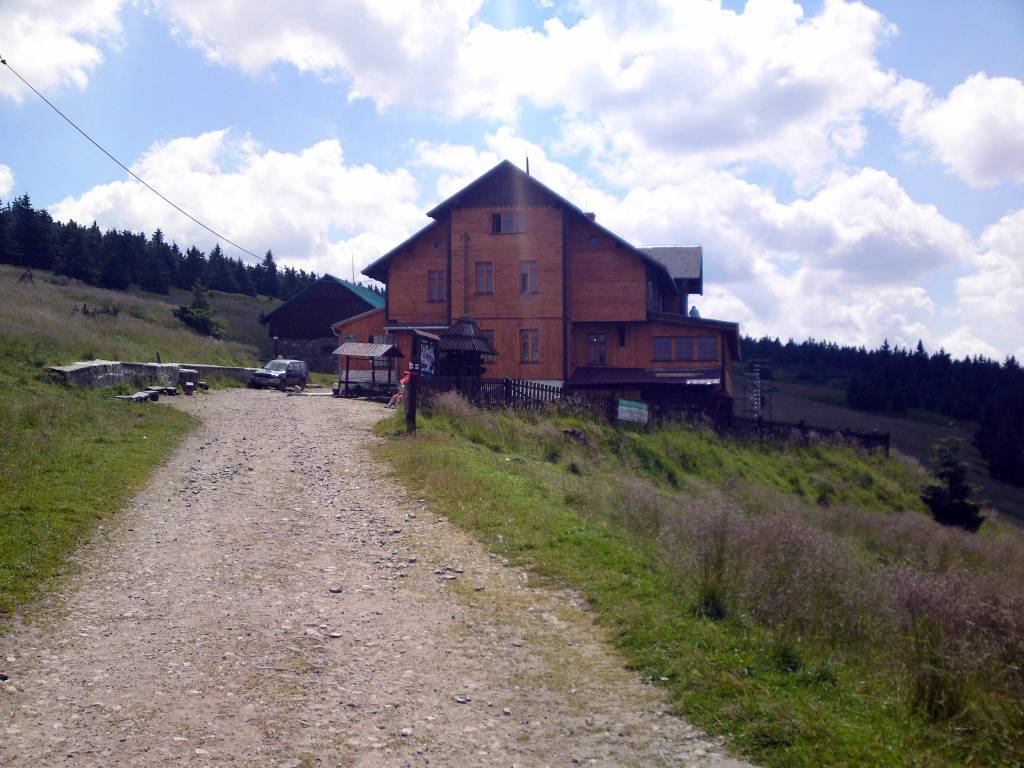 Pogoda dopisała więc ruszam w stronę Kletna a potem Hali Pod śnieżnikiem . Droga ostro wiedzie pod górę . Po kamienistej drodze jedzie się nadzwyczaj dobrze . Przez schroniskiem doganiam grupę Czechów . Nieźle radzą sobie z dość trudnym podjazdem .